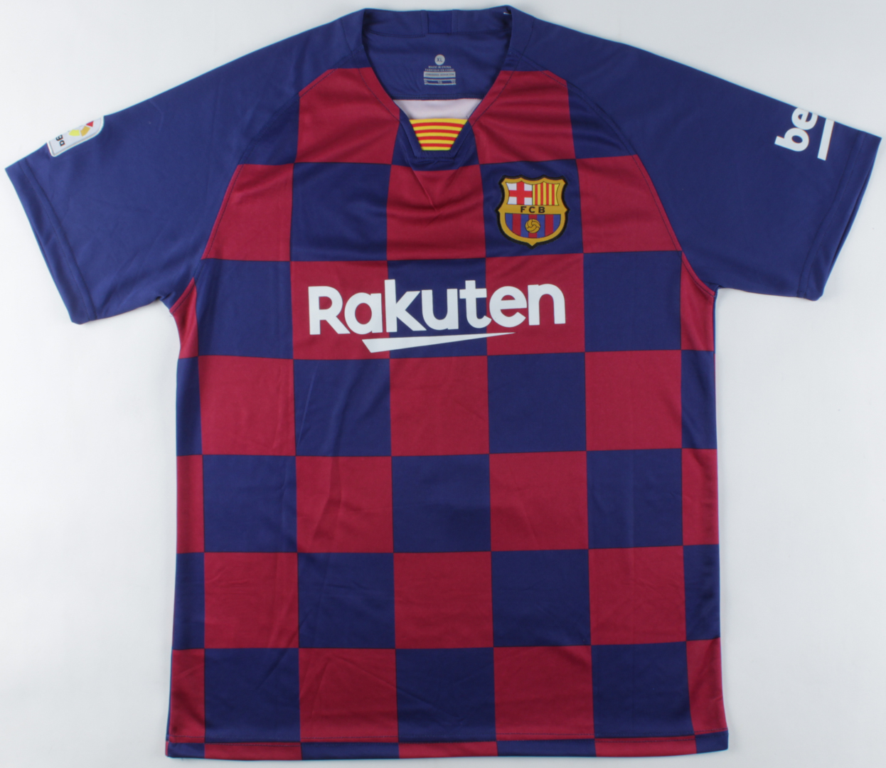 Custom on-field style jersey. Everything printed on, size XL. Hand-signed by Luis Suarez (FC Barcelona).