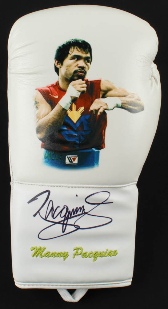 Full-size boxing glove is hand-signed by Manny Pacquiao.