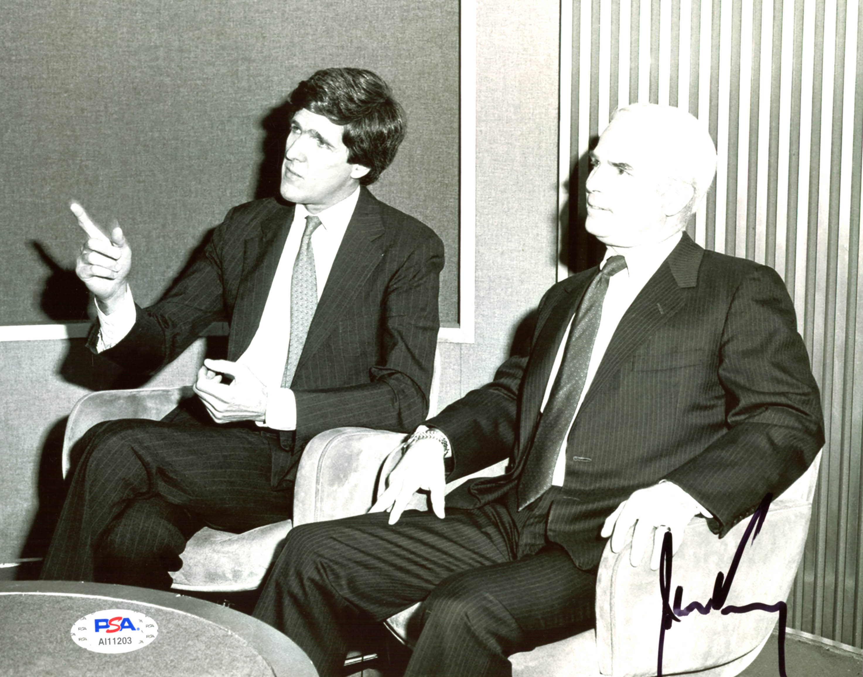 Photo measures 8" x 10" in size and has been hand-signed by John Kerry.
