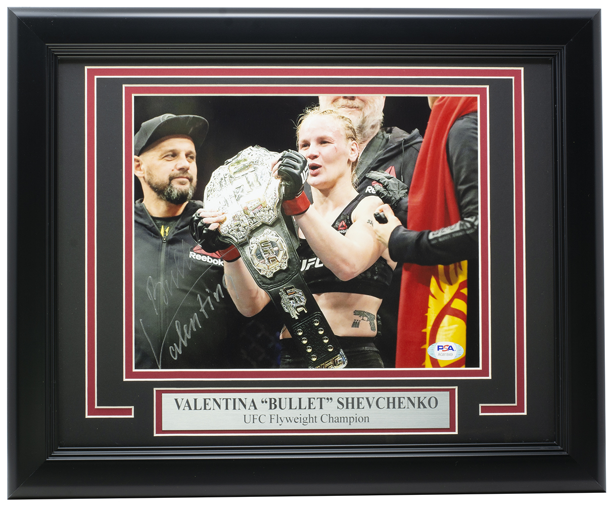 Frame measures 11" x 14" in size and has been hand-signed by Valentina Shevchenko.