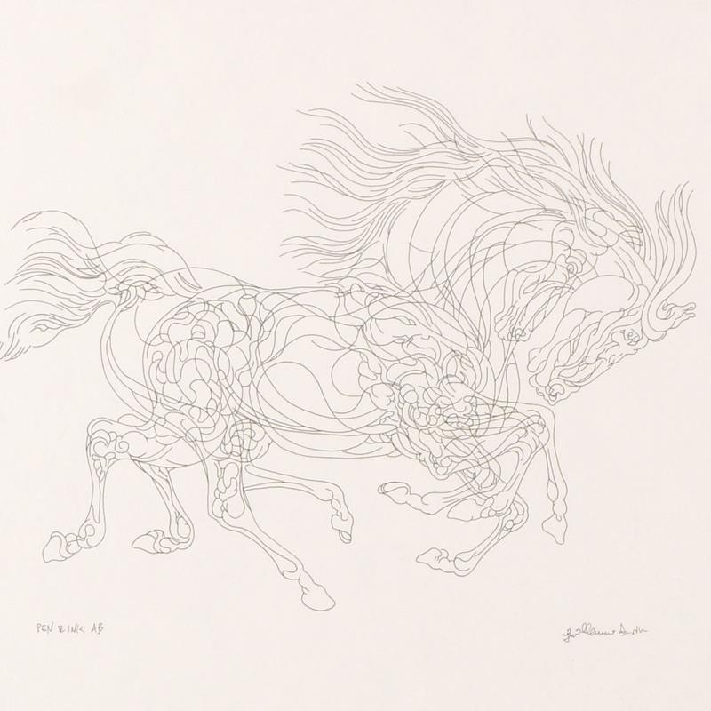 "Pen and Ink AB" is an original drawing on paper by Guillaume Azoulay, hand signed by the artist. This piece comes framed. Includes Letter of Authenticity. Measures approx. 28.5" x 24.5" (frame), 11" x 8" (image).