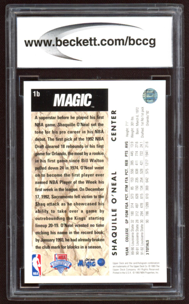 Shaquille O'Neal 1992-93 Upper Deck #1B Trade (BCCG 10)