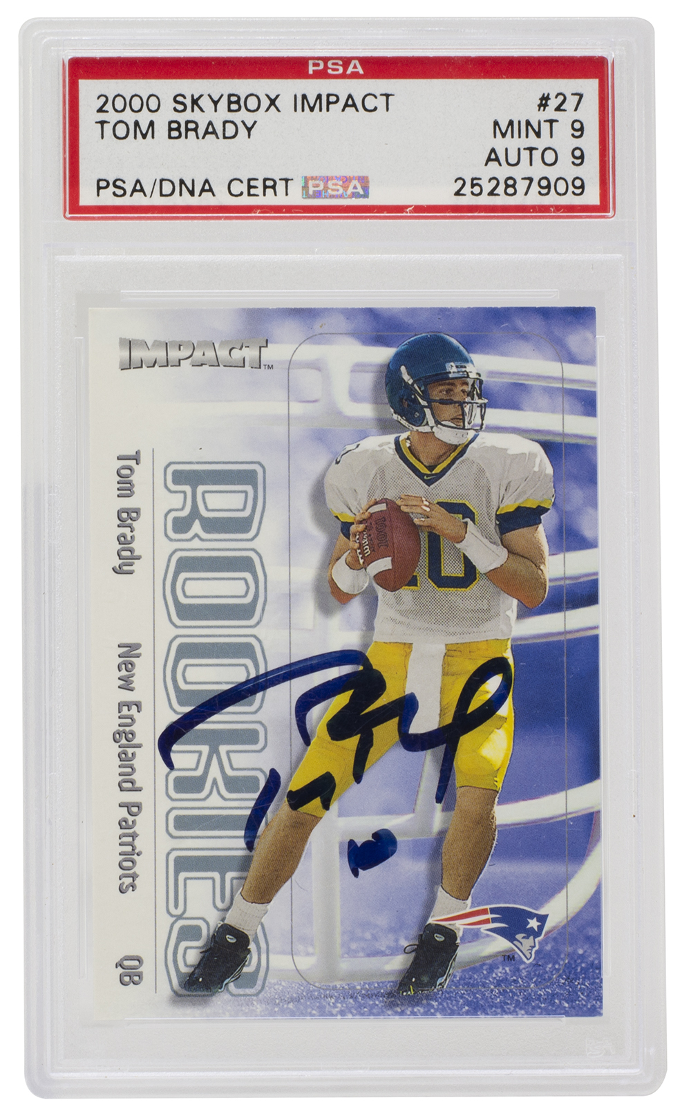 Tom Brady Signed 2000 Impact #27 RC (PSA 9)