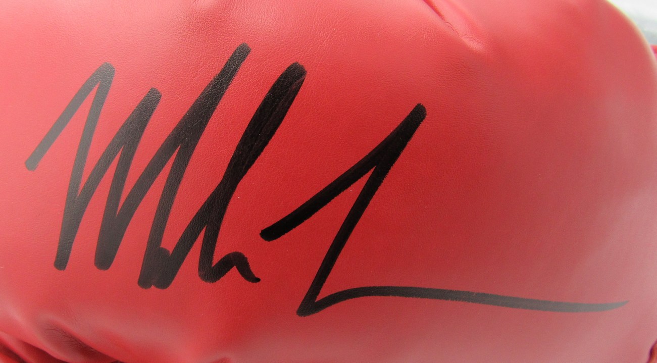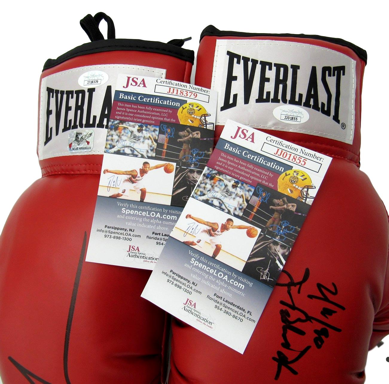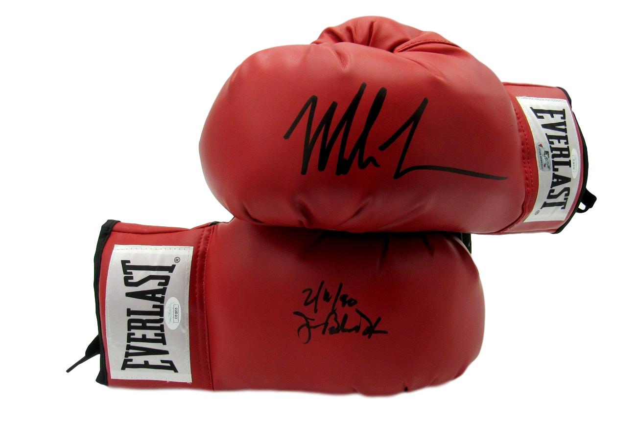 Lot includes both Everlast boxing gloves as shown. One boxing glove has been hand-signed by Mike Tyson (HOF) and one boxing glove has been hand-signed and inscribed by James "Buster" Douglas. Please see photos for details.