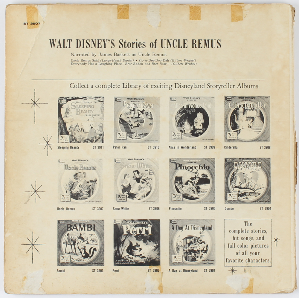 Vintage 1957 Walt Disney's "Uncle Remus" Vinyl record album cover. Please see photos for details.