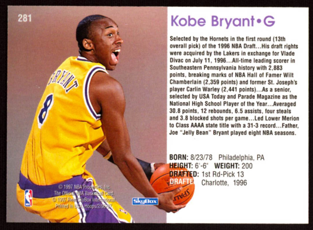 Kobe Bryant 1996-97 Hoops #281 RC