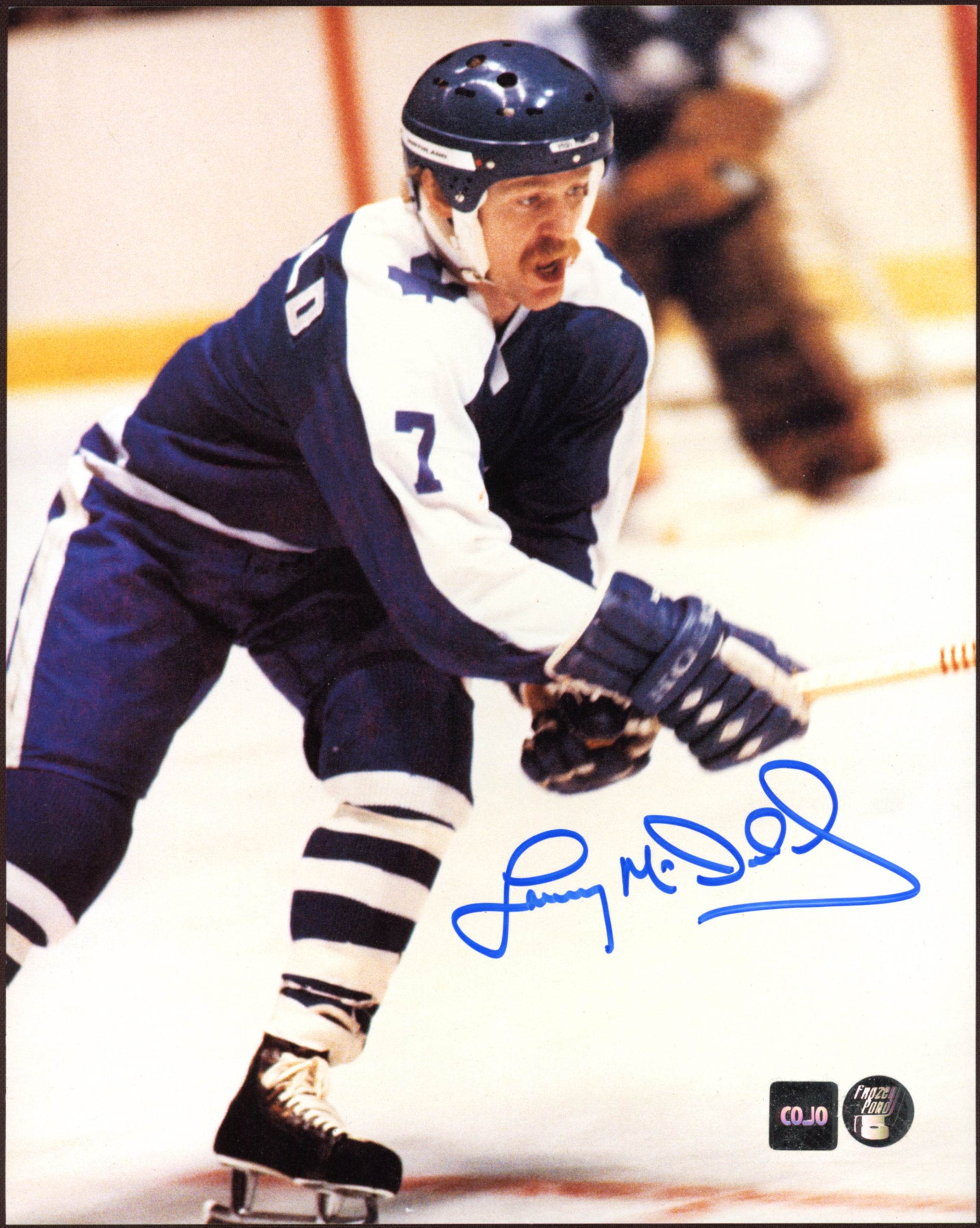 Photo measures 8" x 10" in size and has been hand-signed by Lanny McDonald (Toronto Maple Leafs).