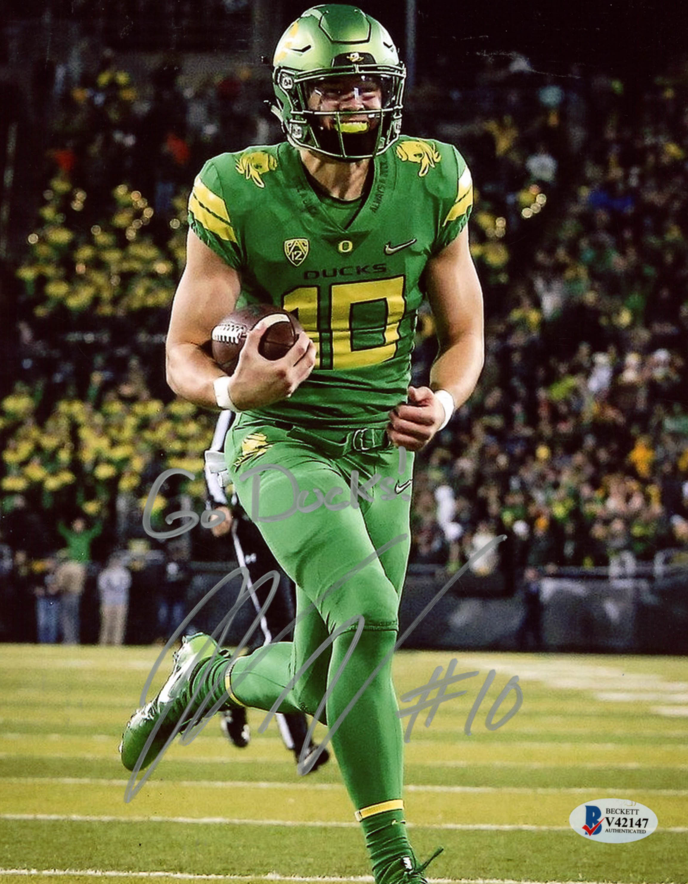 Justin Herbert Signed Oregon Ducks 8x10 Photo Inscribed "Go Ducks!" (Beckett COA)