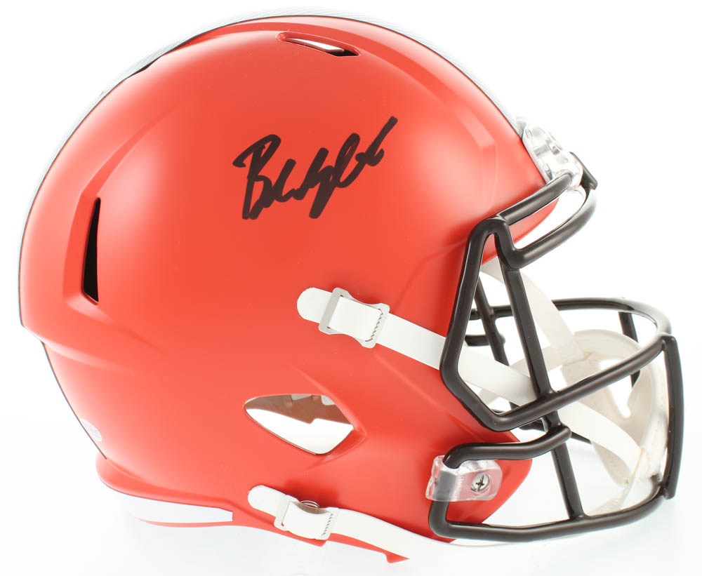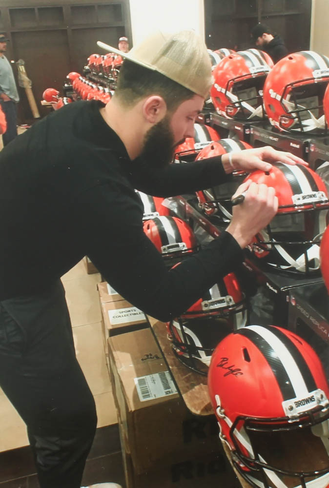 Riddell Cleveland Brown full-size replica Speed helmet. Hand-signed by Baker Mayfield.