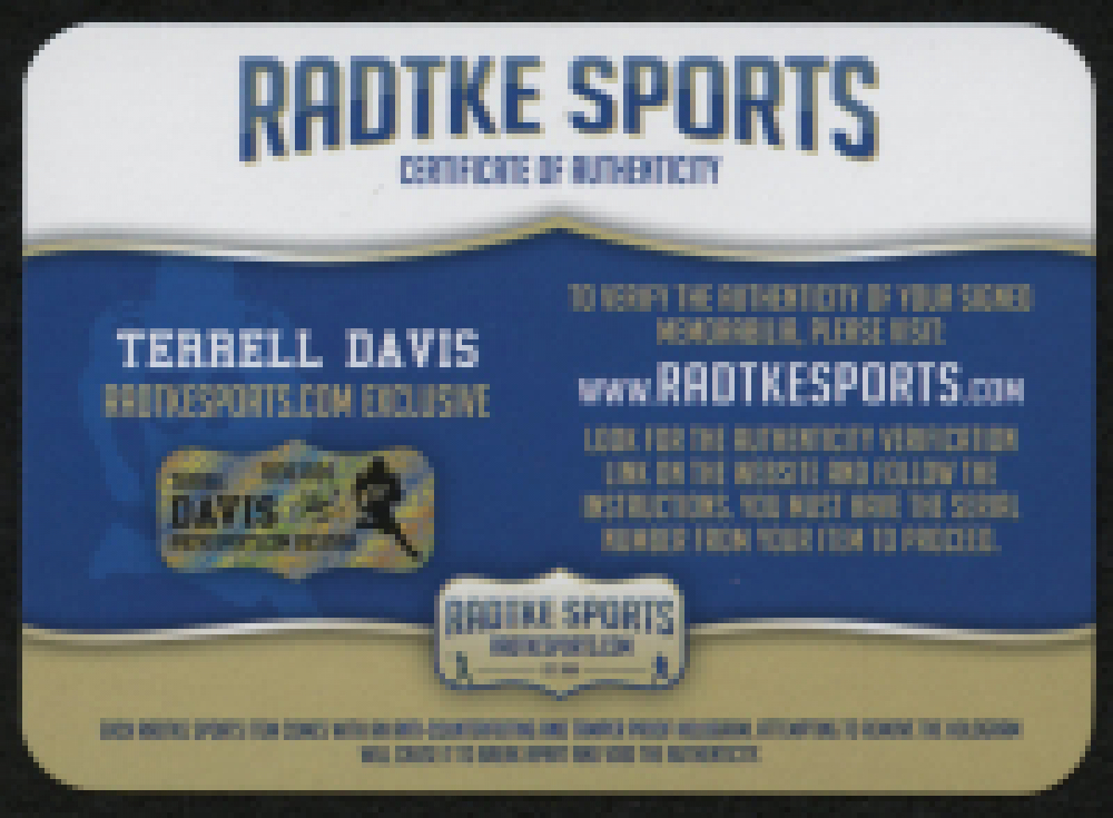 The lot / autograph(s) includes an official exclusive Terrell Davis hologram and COA from Radtke Sports. Also includes a proof photo from the signing.