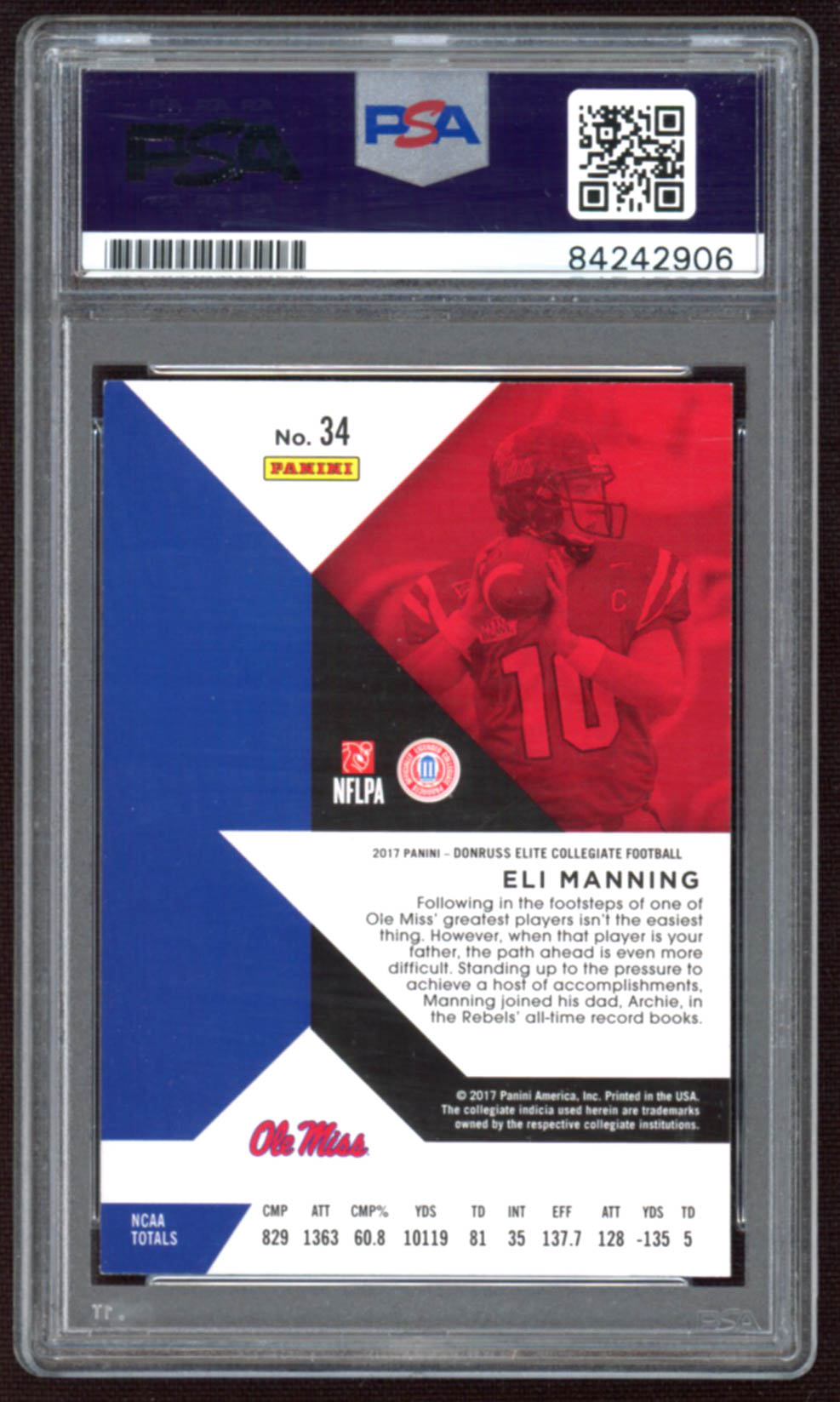 Eli Manning Signed 2017 Elite Draft Picks #34 (PSA Encapsulated)
