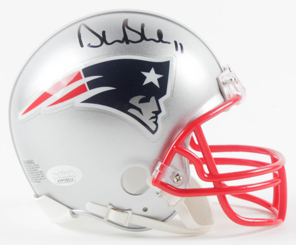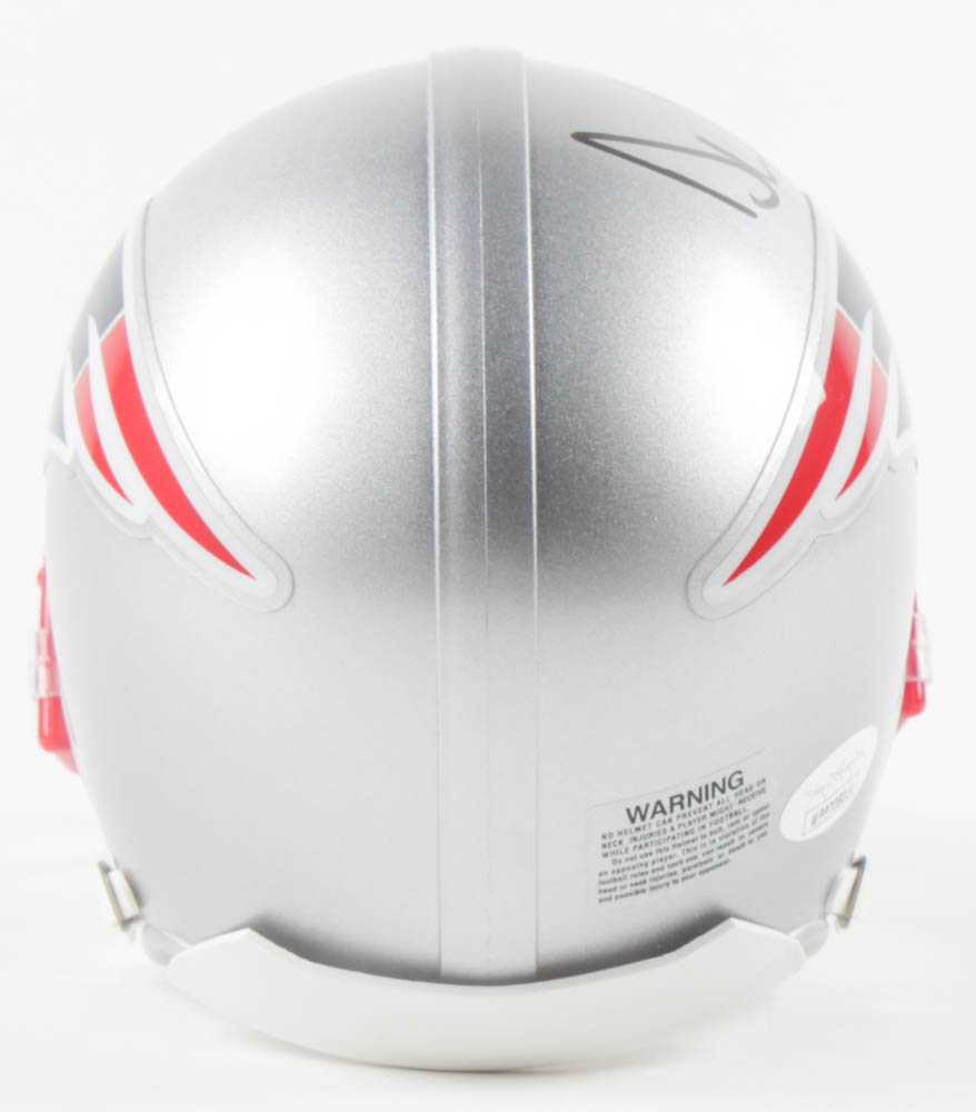 Riddell New England Patriots mini helmet has been hand-signed by Drew Bledsoe.