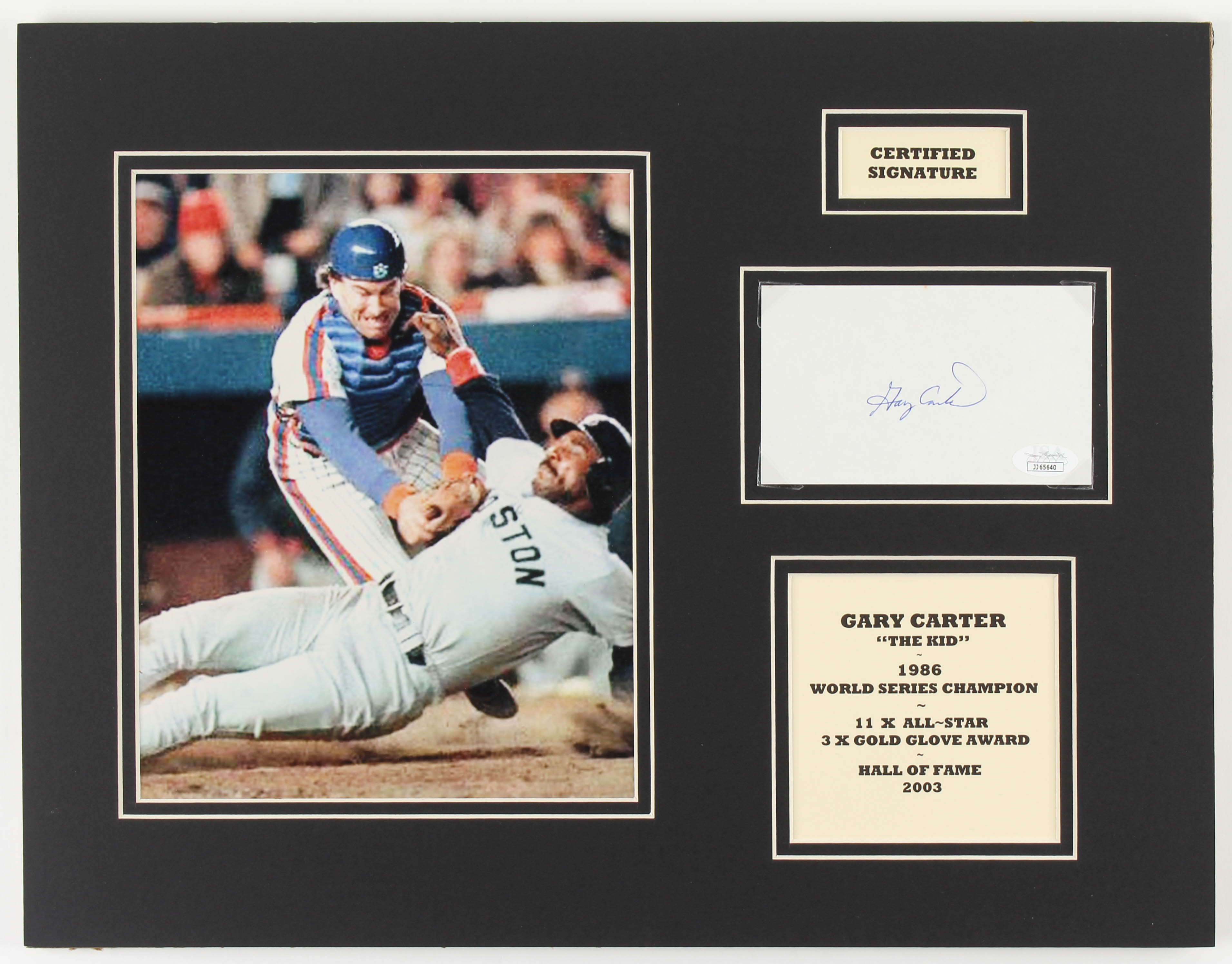 Gary Carter Signed Mets 14x18 Custom Matted Index Card Display with Photo (JSA COA)