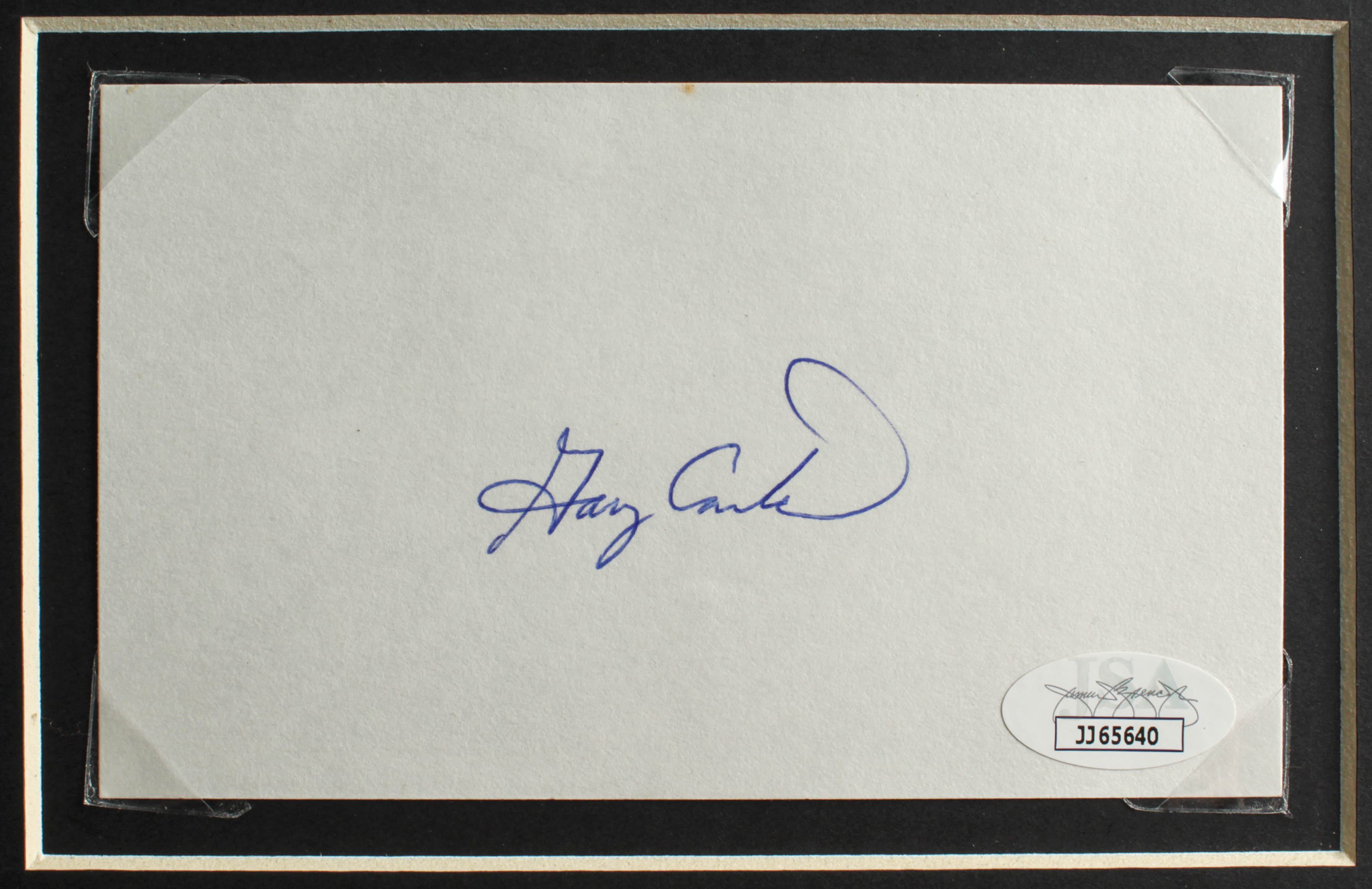 Custom matted display measures 14" x 18" in size and features an index card that has been hand-signed by Gary Carter (D. 2012, HOF). The display also includes an 8" x 10" photo from the 1986 World Series.