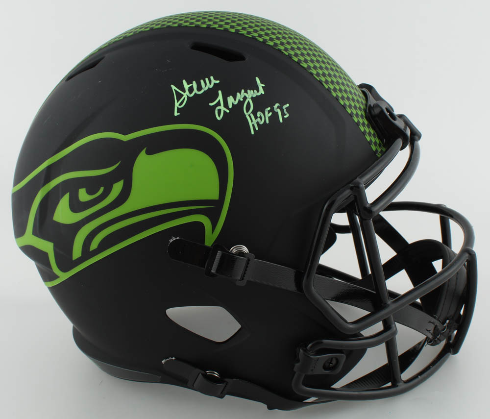Riddell Seattle Seahawks full-size replica Eclipse Alternate speed helmet. Hand-signed and inscribed by Steve Largent.