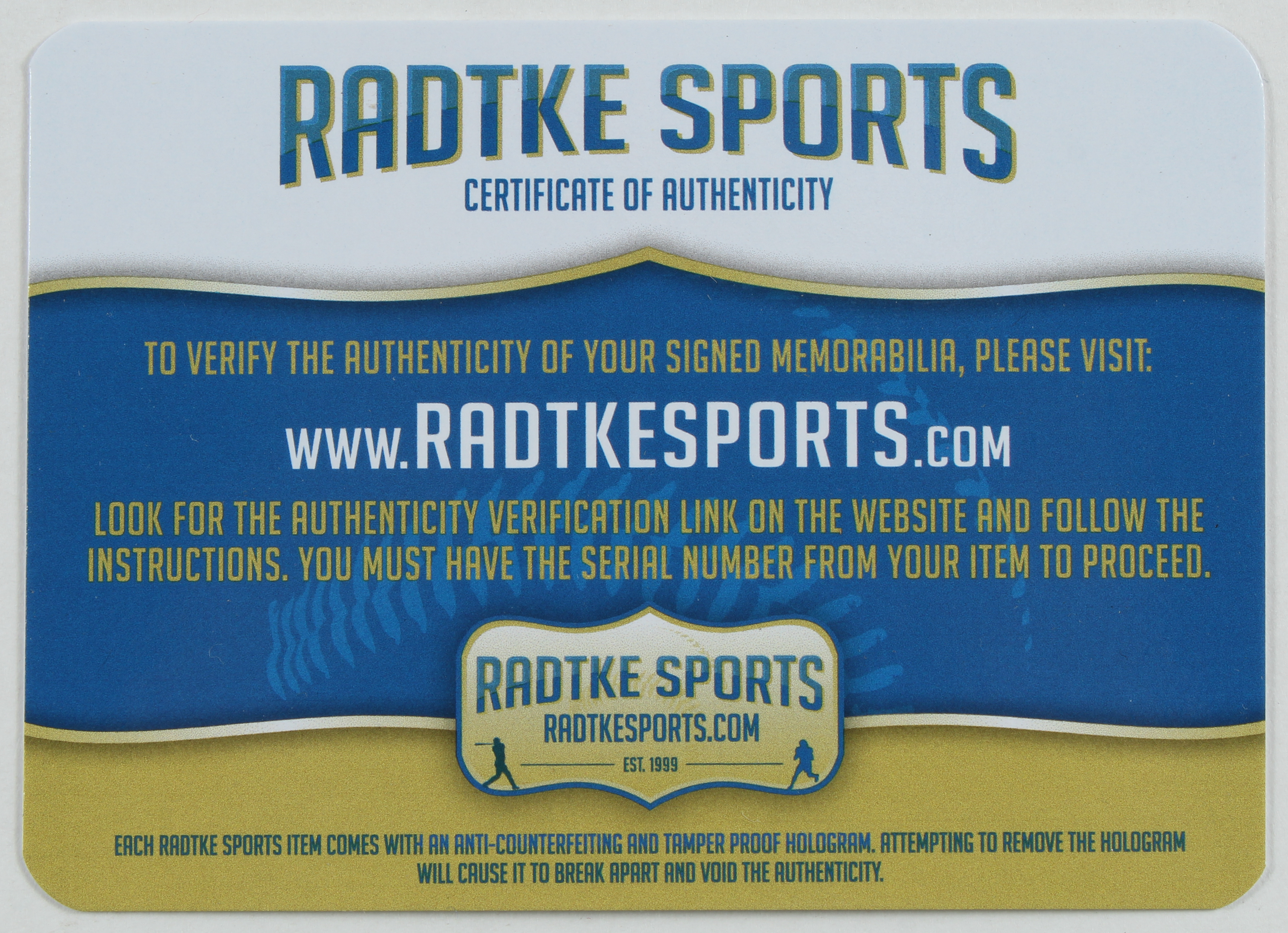 The lot / autograph(s) includes an official Radtke Sports hologram and matching COA for authenticity purposes. Also includes a proof picture from the signing.