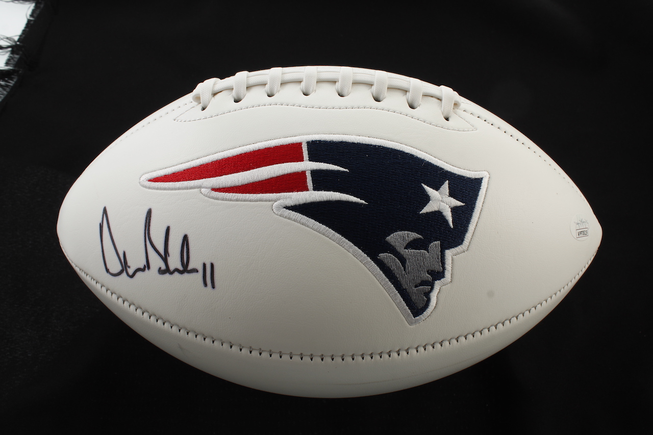 New England Patriots Logo Football has been hand-signed by Drew Bledsoe. Please see images for details regarding the condition of the football.