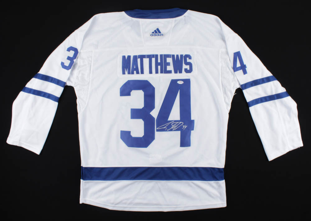 Adidas on-ice style jersey. Everything sewn on, size XL. Hand-signed by Auston Matthews (Toronto Maple Leafs).