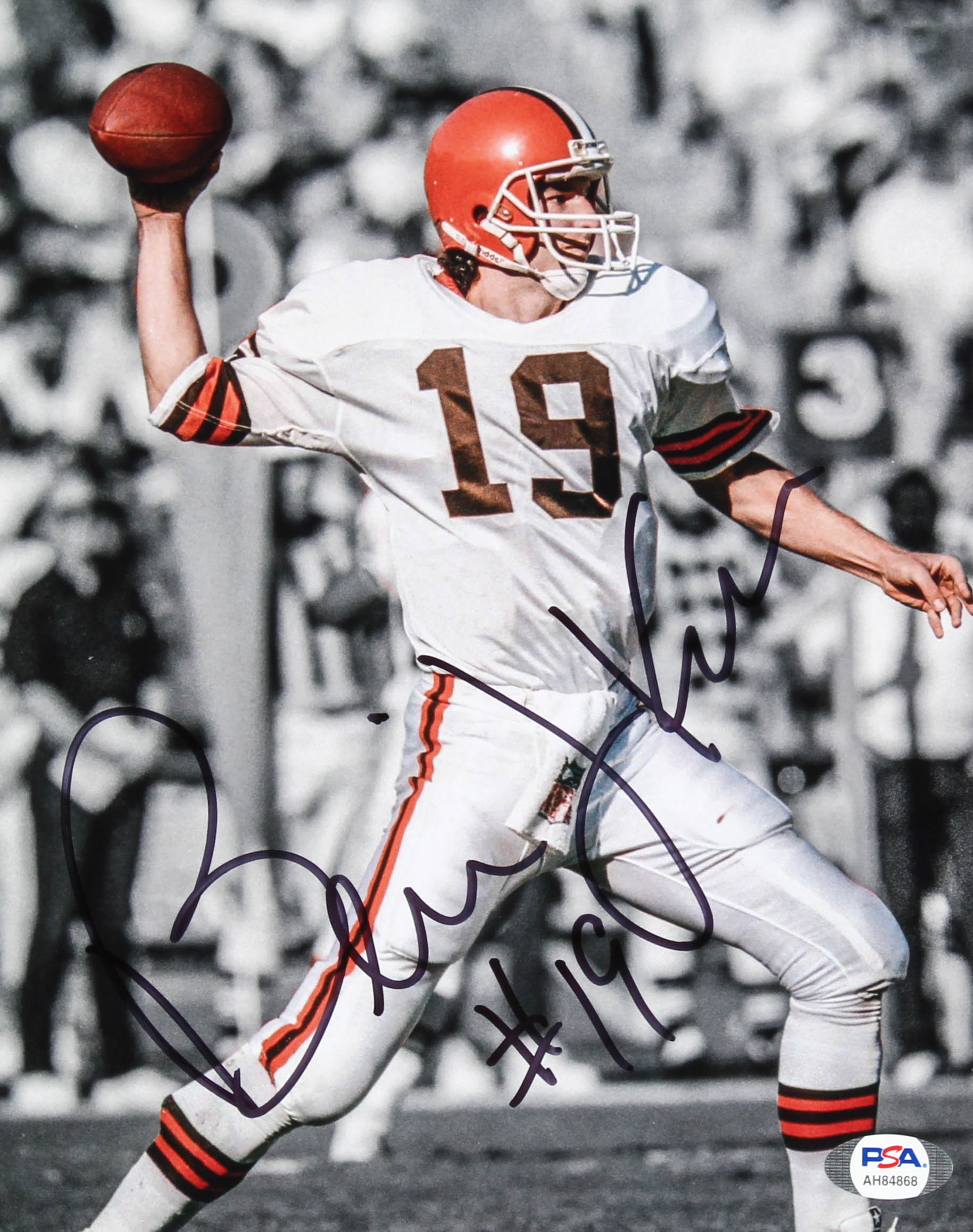 Photo measures 8" x 10" in size and has been hand signed by Bernie Kosar (Cleveland Browns)