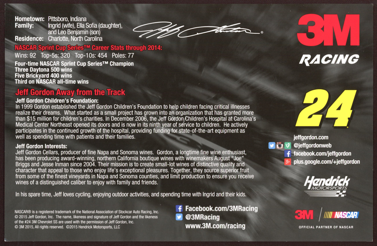 Photo card measures 5.5" x 8.5" in size and has been hand-signed by Jeff Gordon.