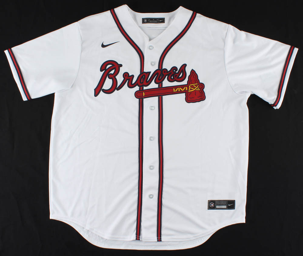 Nike on-field style jersey. Everything sewn on, size XL. Hand-signed by Ronald Acuna Jr. (Atlanta Braves).