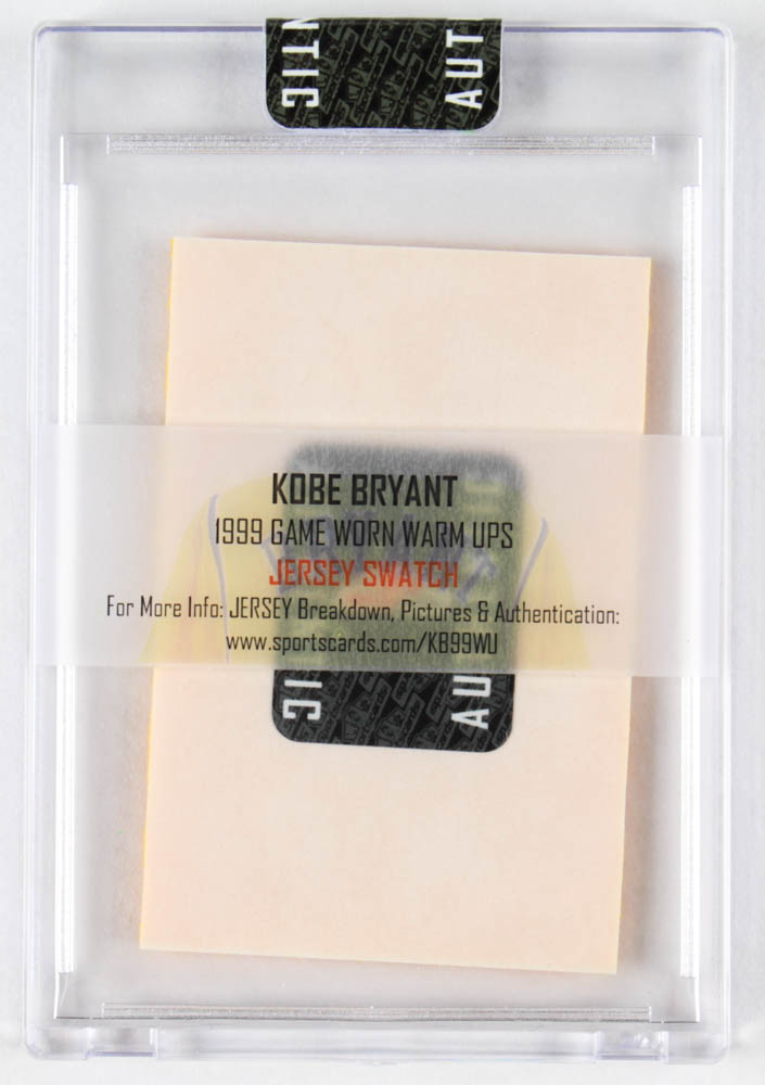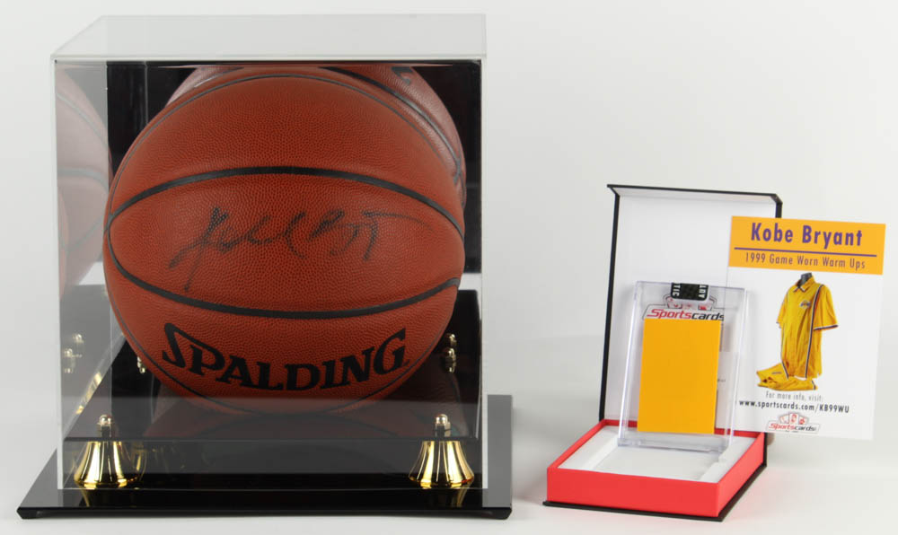 1999 Game Worn Warm Ups Jersey Swatch and Spalding Competitive Indoor/Outdoor NBA basketball. Hand-signed by Kobe Bryant (D. 2020, Los Angeles Lakers).
