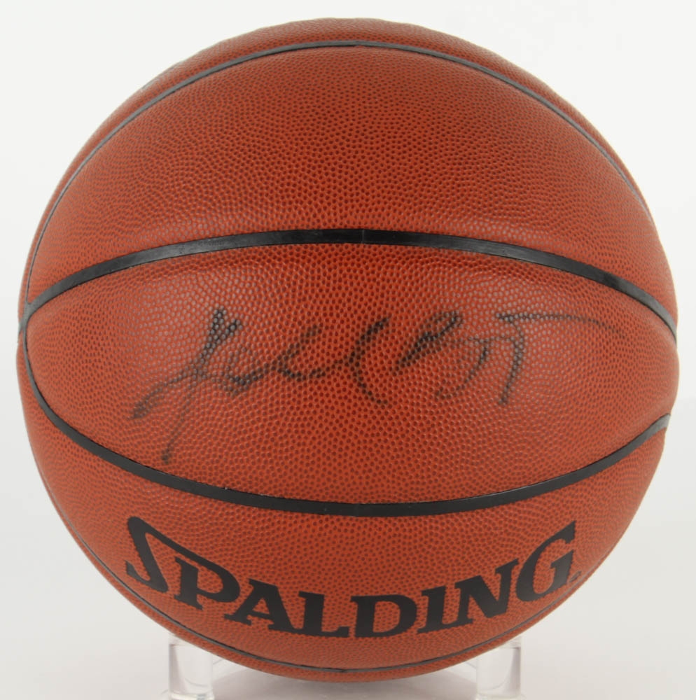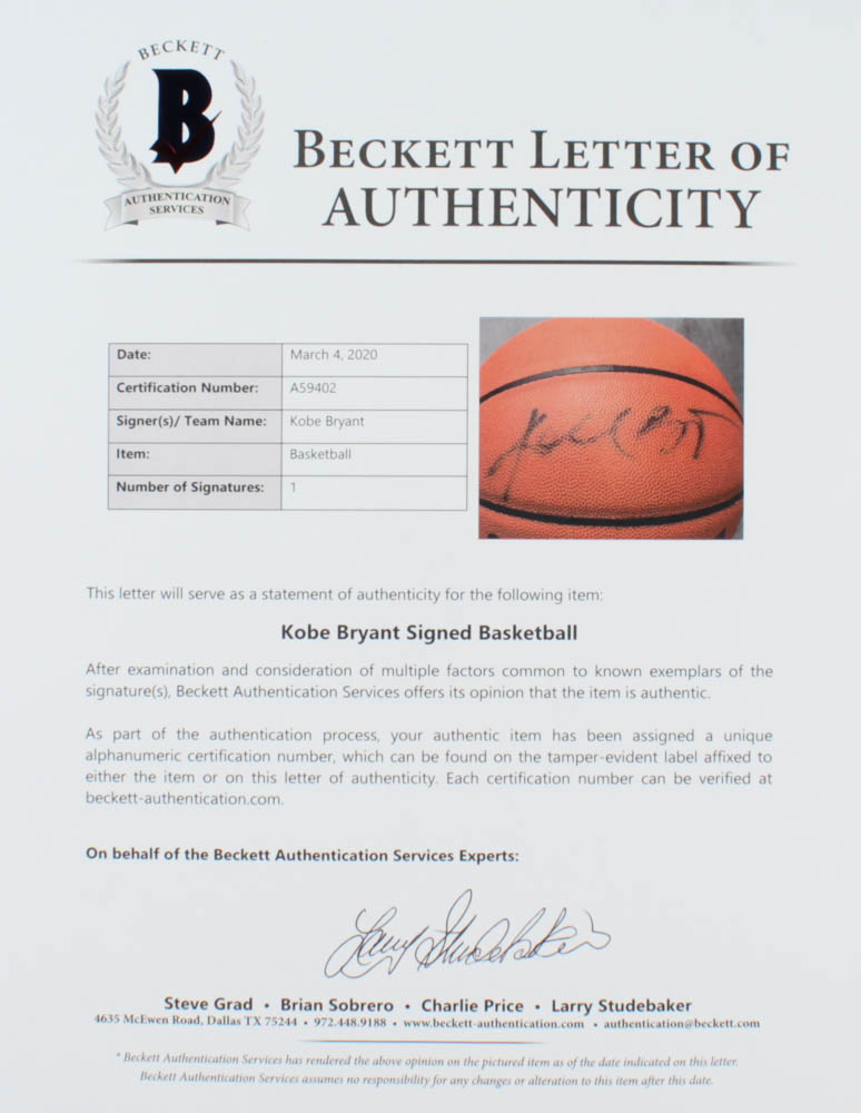 Kobe Bryant Signed NBA Basketball with Jersey Swatch (Beckett LOA & PSA Hologram)