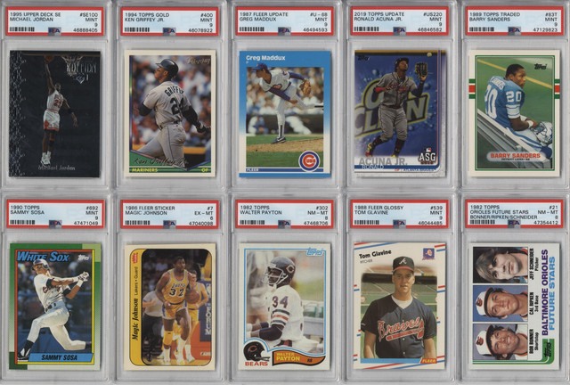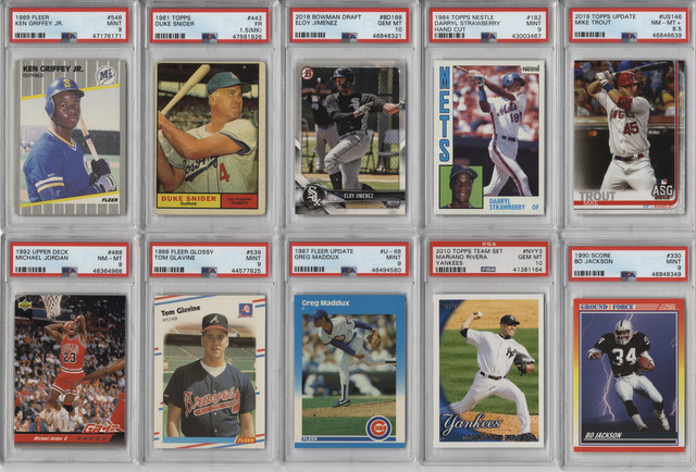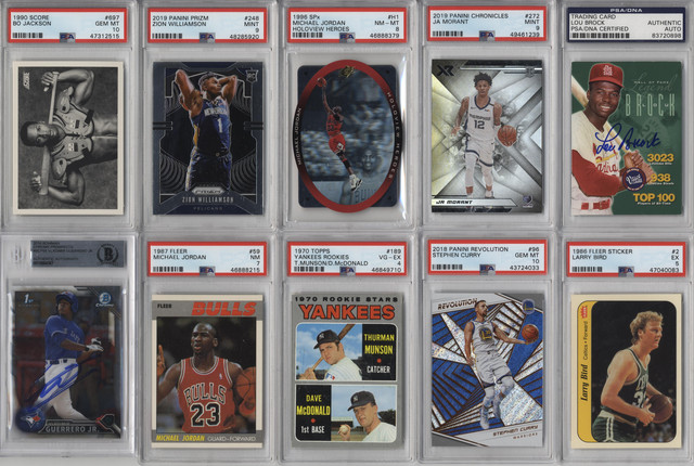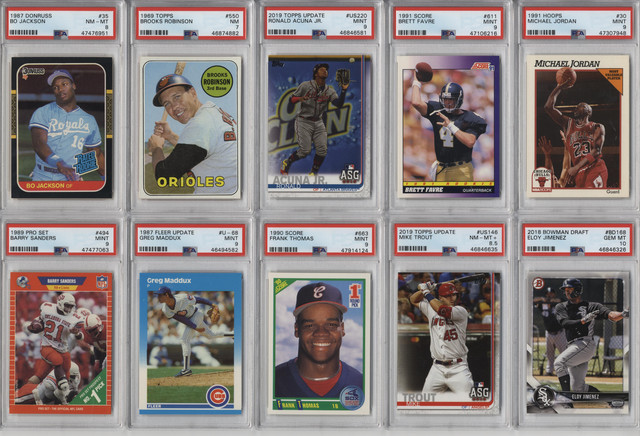 - (100+) CARDS TOTAL FROM COMMON TO HOF CARDS. LOOK FOR RANDOMLY INSERTED INSERT OR PARALLEL CARDS, AUTOGRAPHED CARDS, INDIVIDUAL CARDS, UNOPENED PACKS, UNOPENED RACK PACKS, UNOPENED BOXES OR UNOPENED SETS + GRADED CARDS!!!