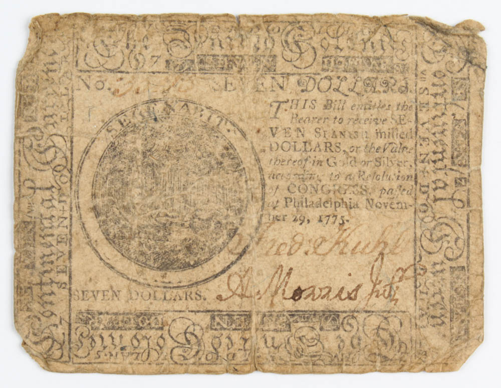 1775 $7 Seven Dollars - Continental - Colonial Currency Note