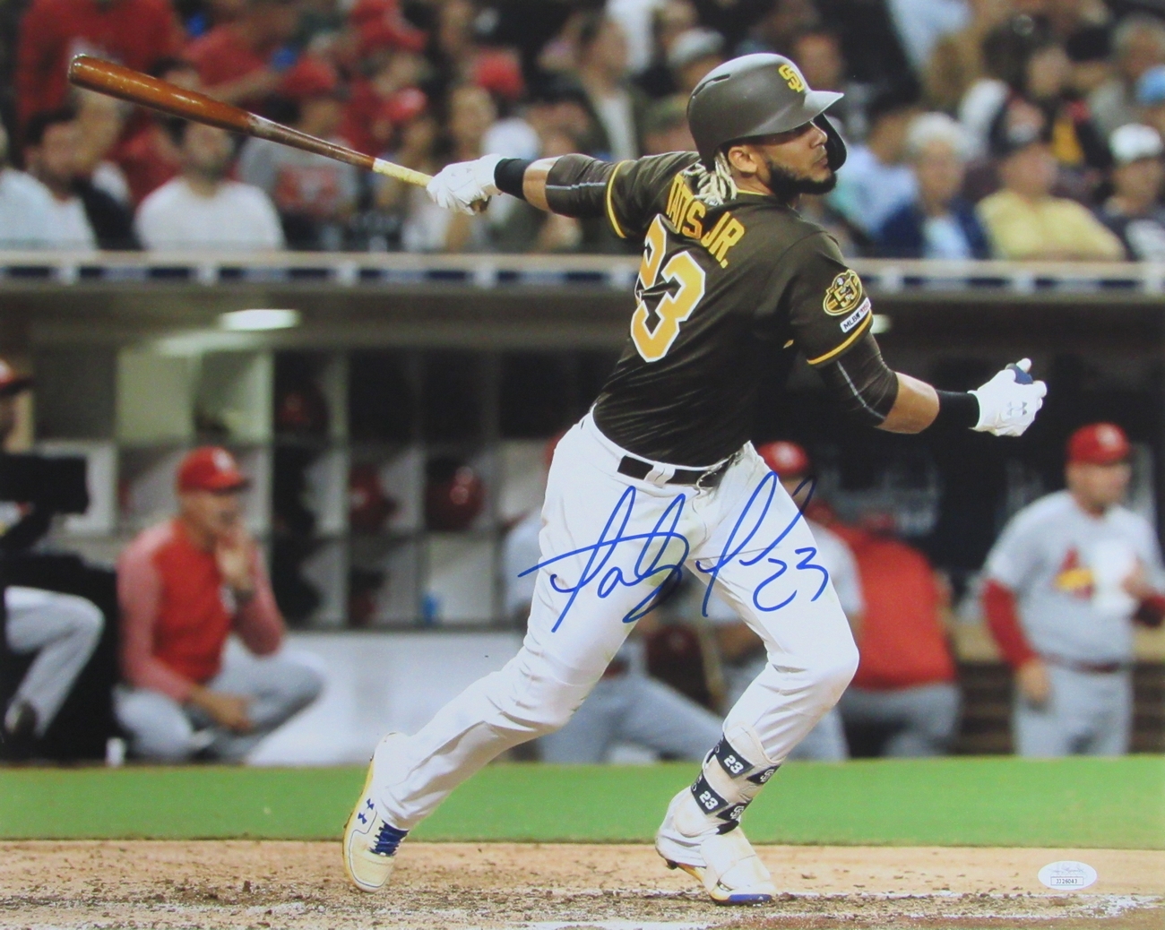 Photo measures 16" x 20" in size and has been hand-signed by Fernando Tatis Jr. (San Diego Padres).