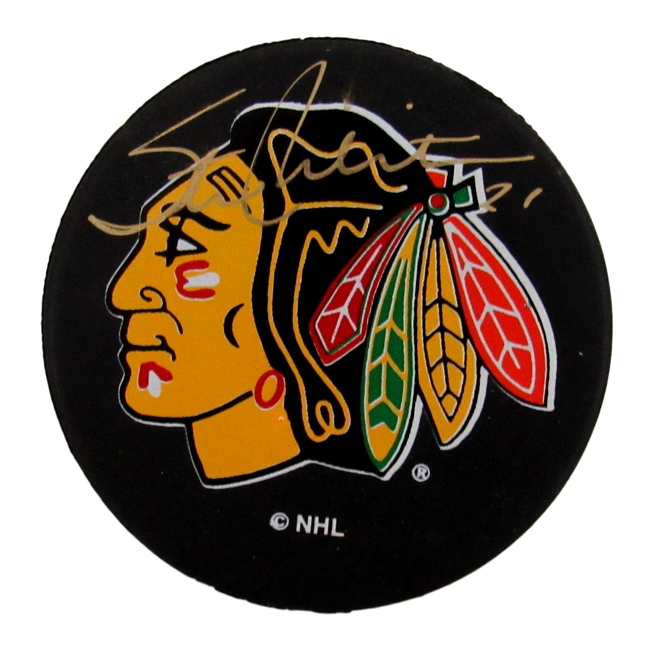 Stan Mikita Signed Blackhawks Logo Hockey Puck (PSA COA)
