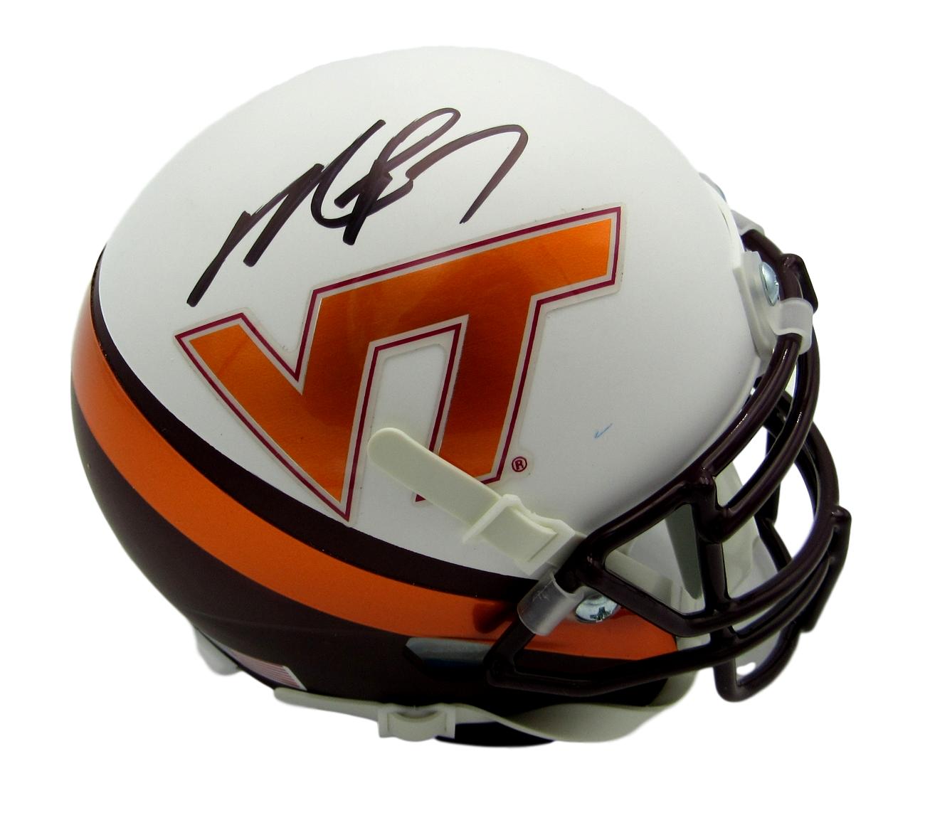 Schutt Virginia Tech Hokies custom matte white mini helmet. Hand-signed by Michael Vick.