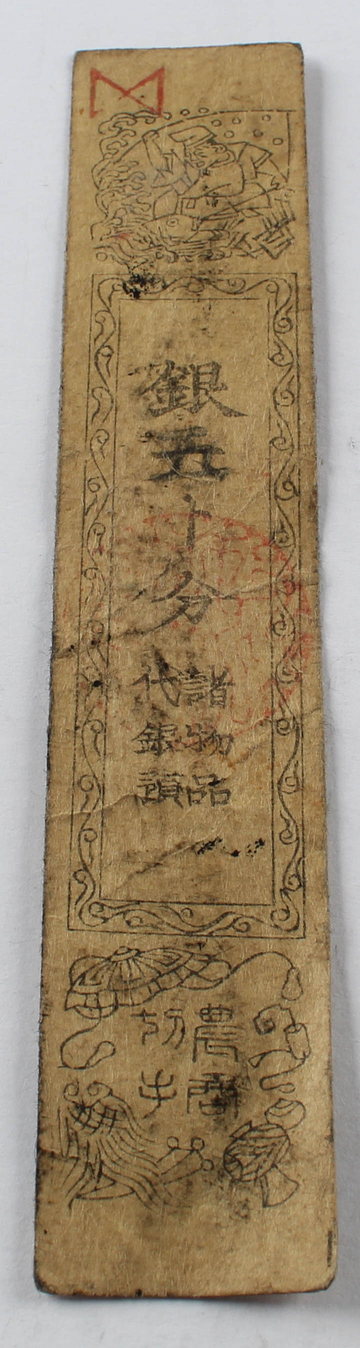 17-1800's Feudal Japan, Edo Period - 1 Silver Monme Hansatsu Clan Note