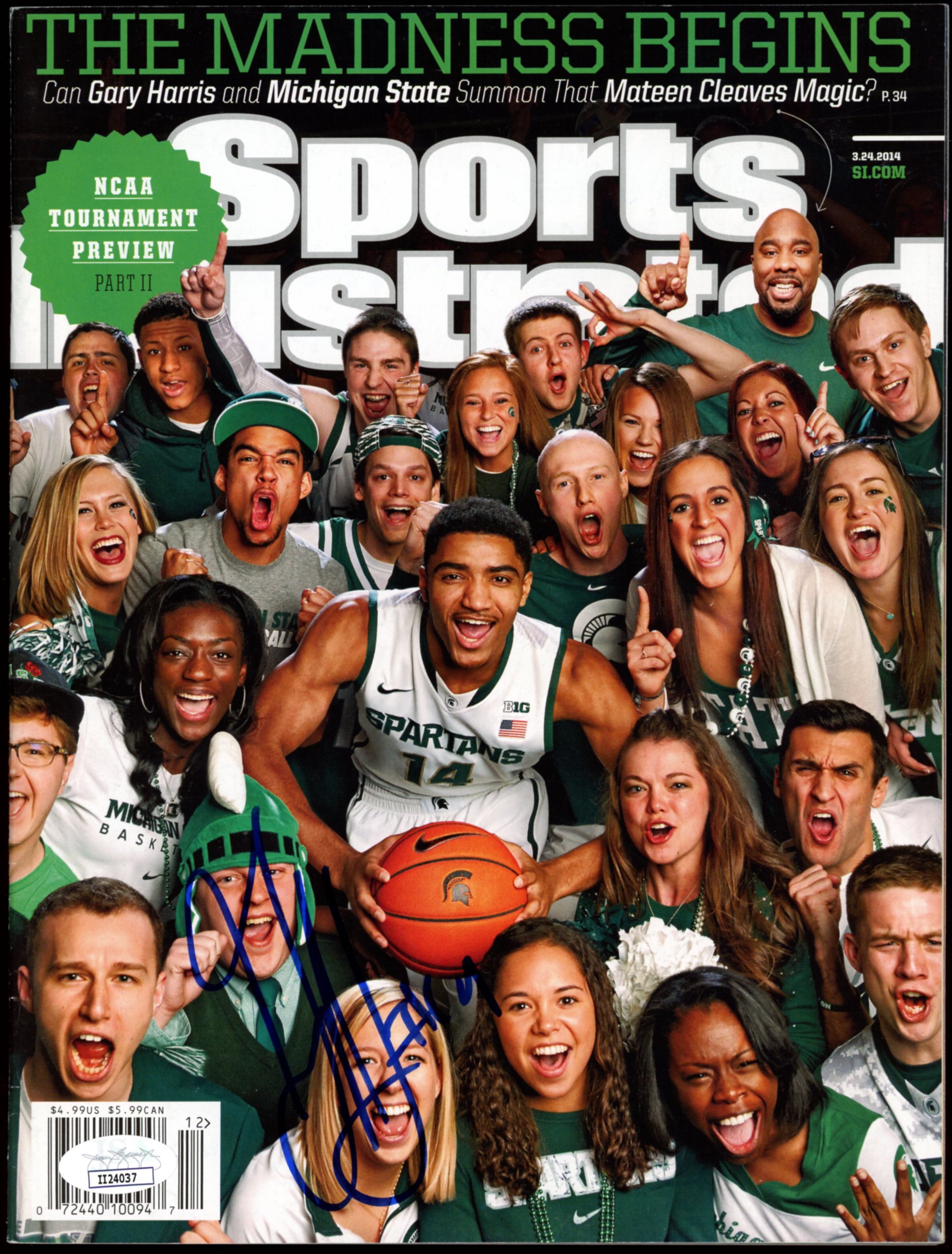 March 24th, 2014 Sports Illustrated Magazine has been hand signed by Gary Harris (Michigan State Spartans).