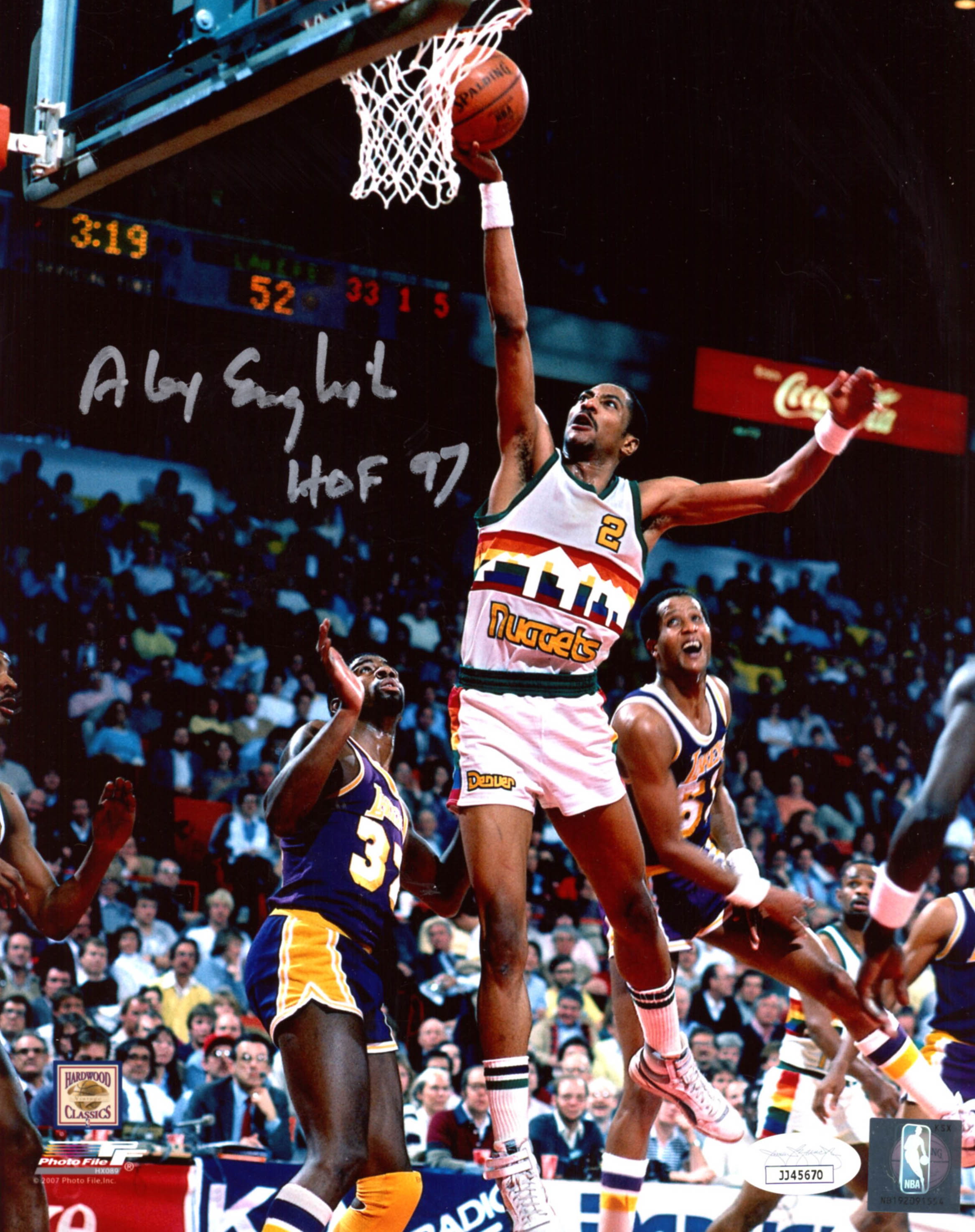 Alex English Signed Nuggets 8x10 Photo Inscribed "HOF 97" (JSA COA)