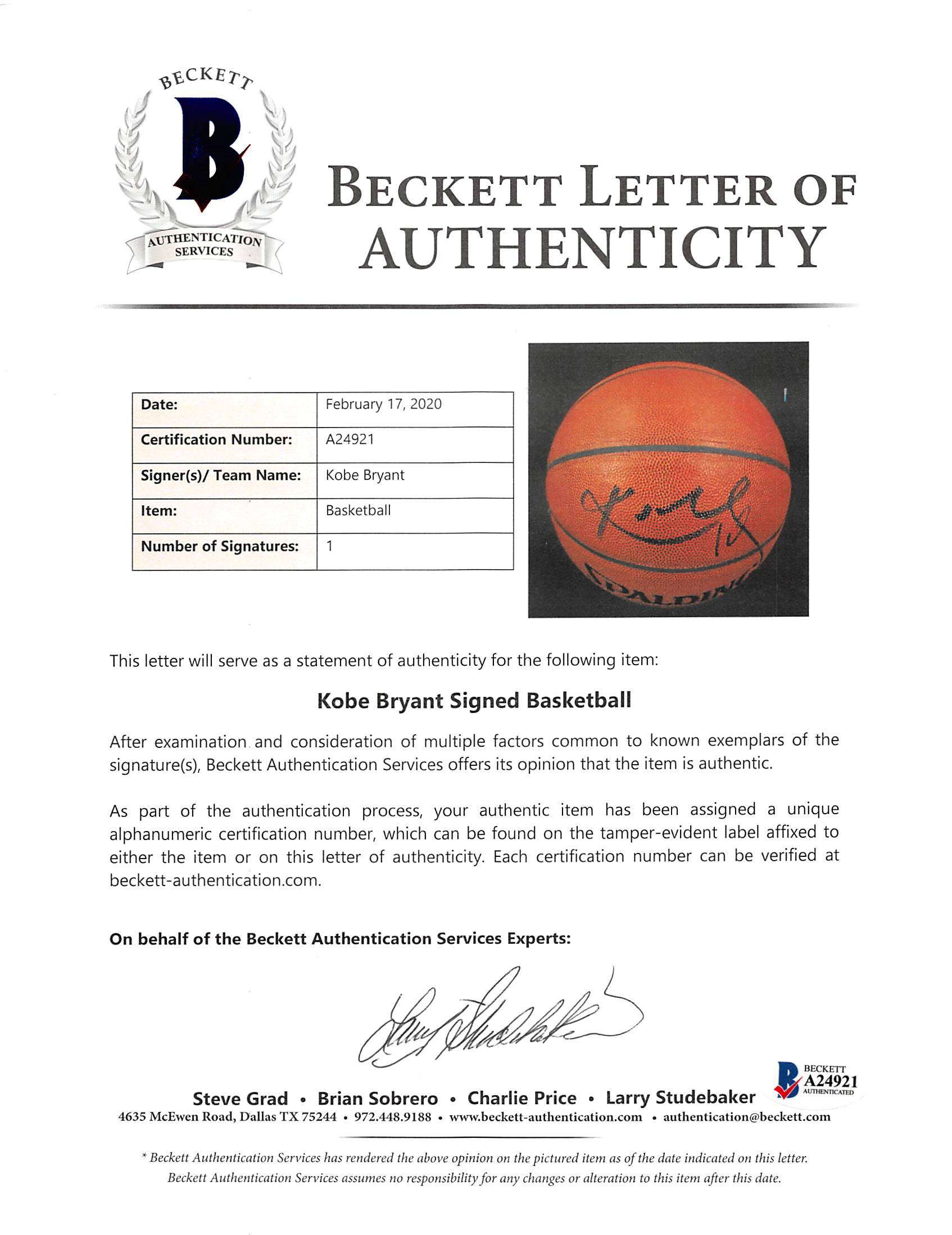 Kobe Bryant Signed NBA Basketball (Beckett LOA)