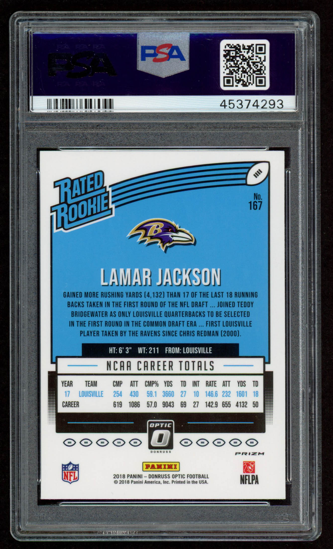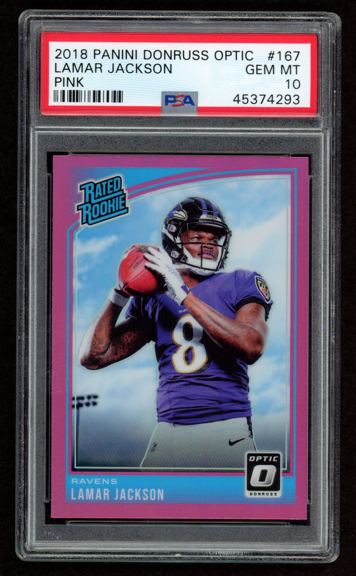 Lamar Jackson 2018 Donruss Optic Pink #167 Rated Rookie (PSA 10)
