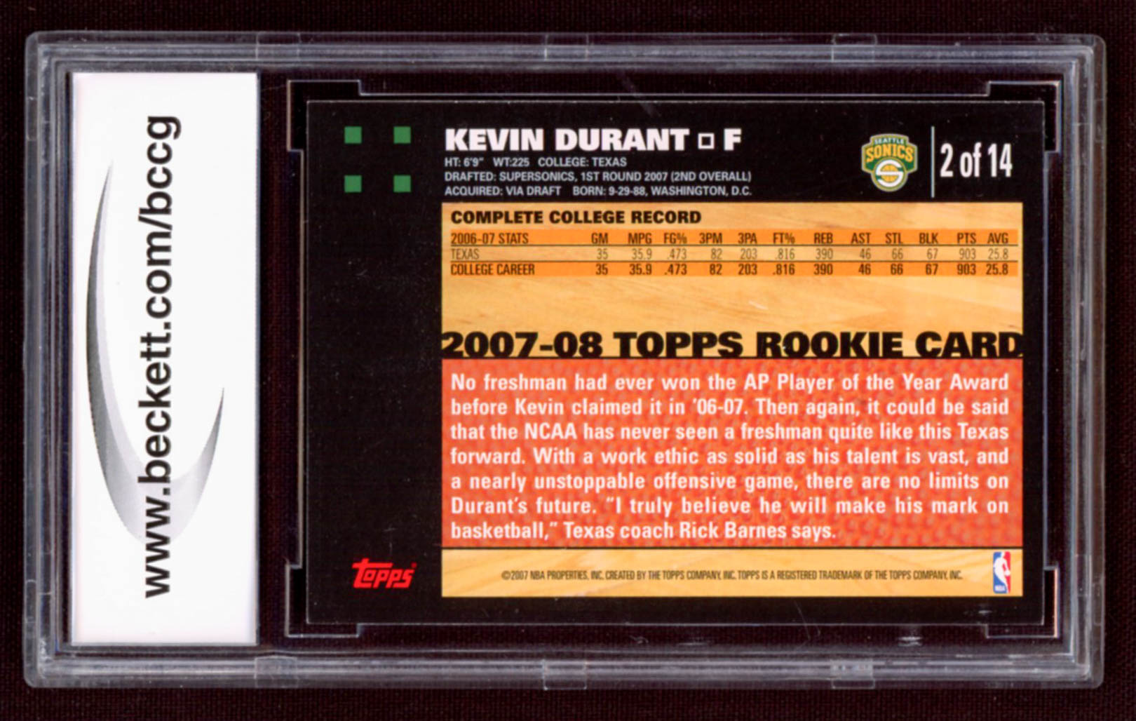 Kevin Durant 2007-08 Topps Rookie Set #2 RC (BCCG 10)