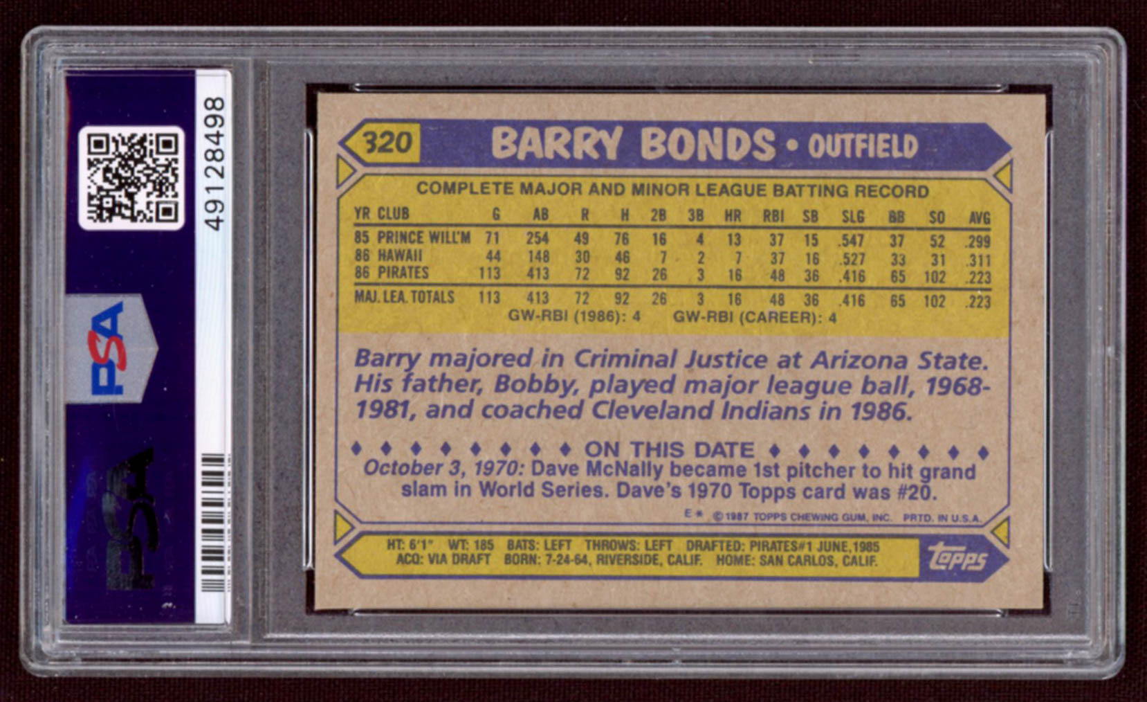 Barry Bonds 1987 Topps #320 RC (PSA 10)