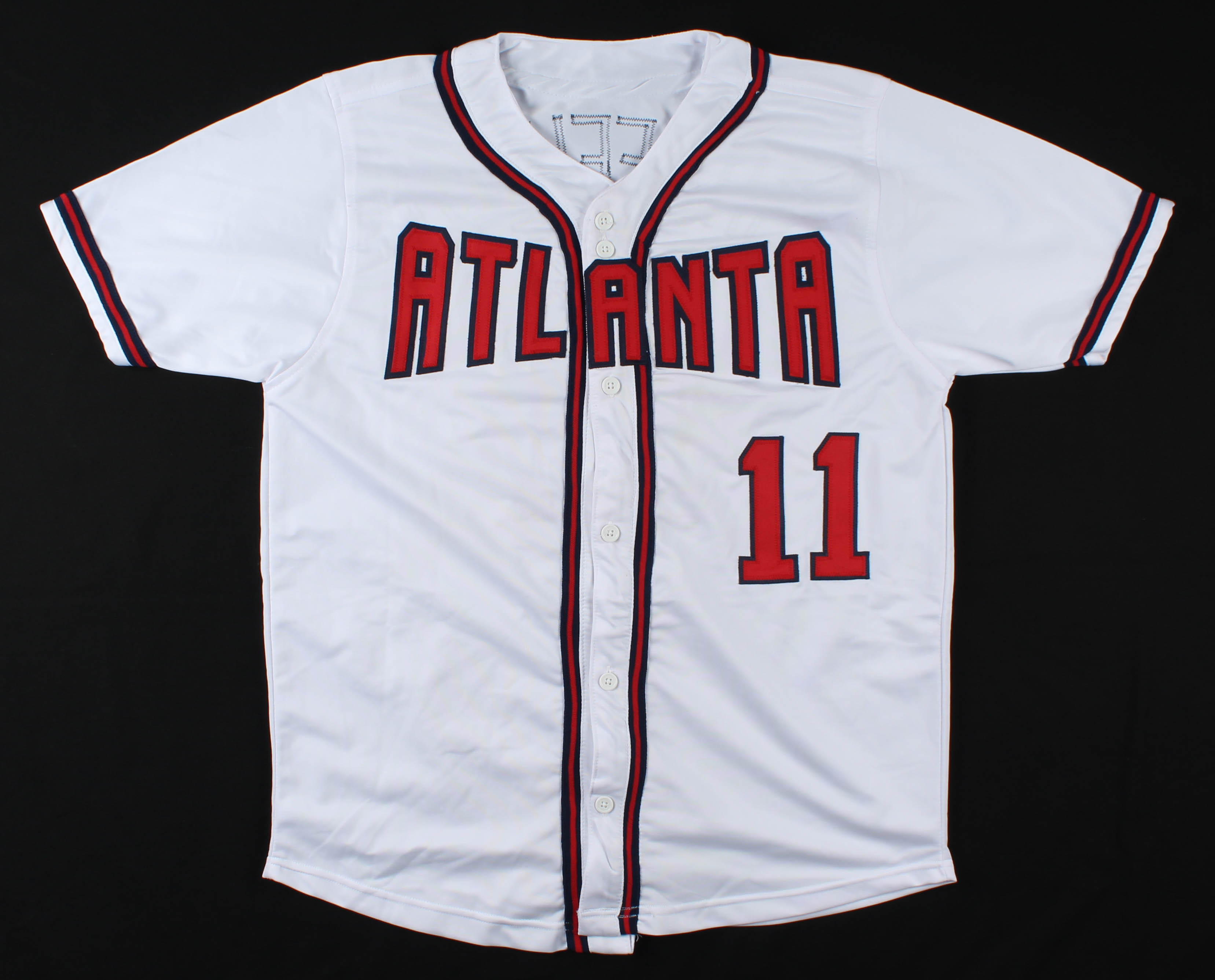 Custom on-field style jersey. Everything is sewn on, size XL. Has been hand-signed by Gary Sheffield.