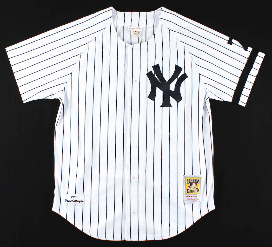 Mitchell & Ness on-field style jersey. Everything is sewn on, size 44. Has been hand-signed by Don Mattingly (New York Yankees).