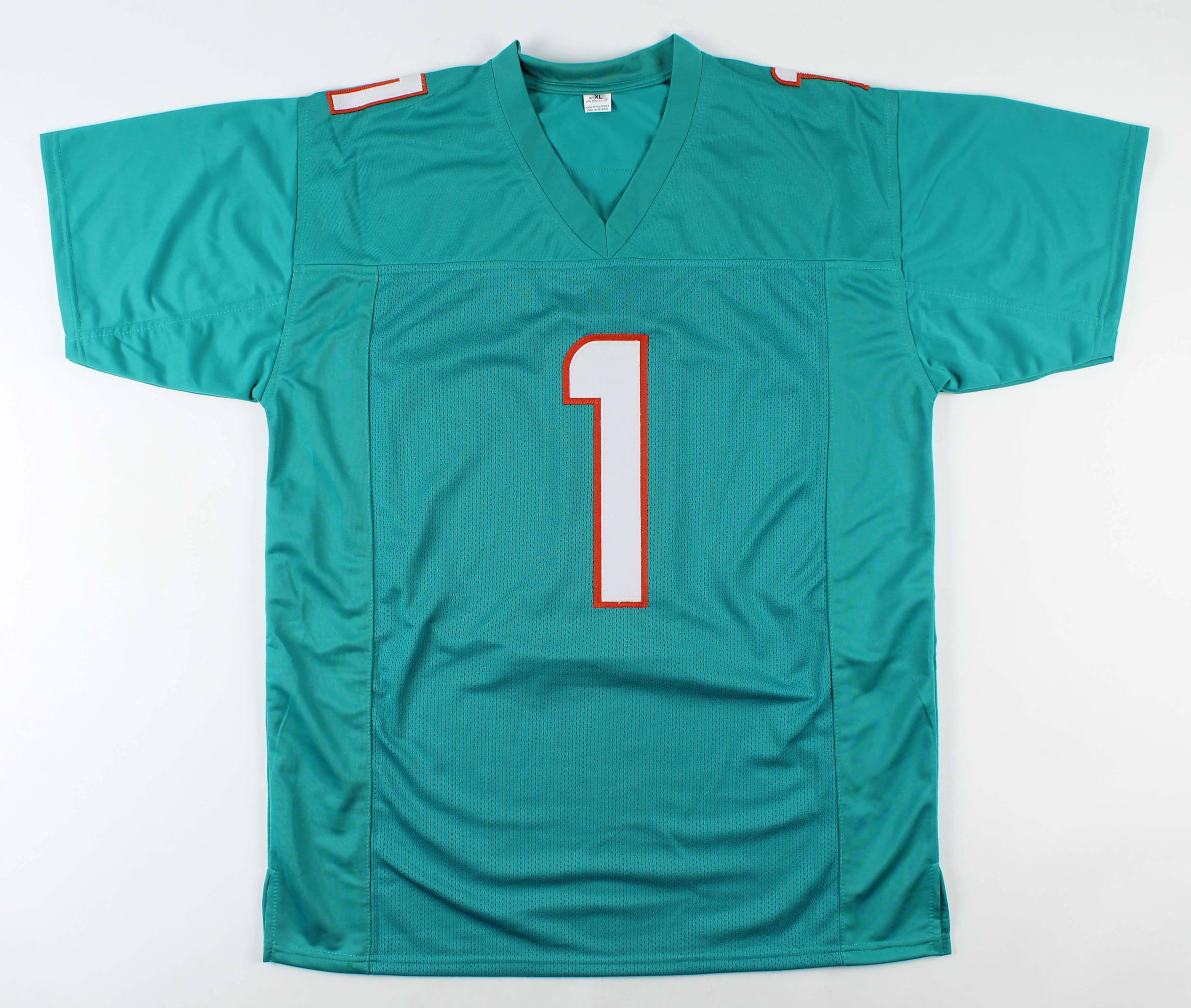 Custom on-field style jersey. Everything is sewn on, size XL. Has been hand-signed by Tua Tagovailoa.