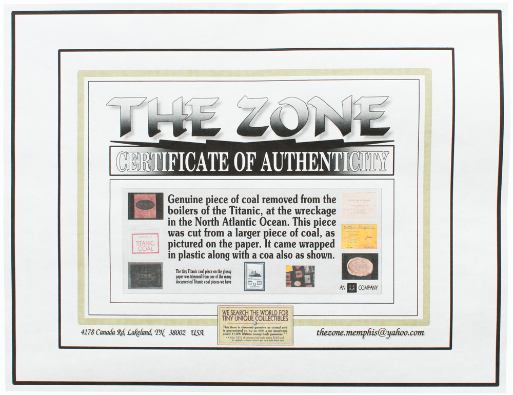 Authentic Coal From Titanic Wreckage on 6x8 Photo (The Zone COA)