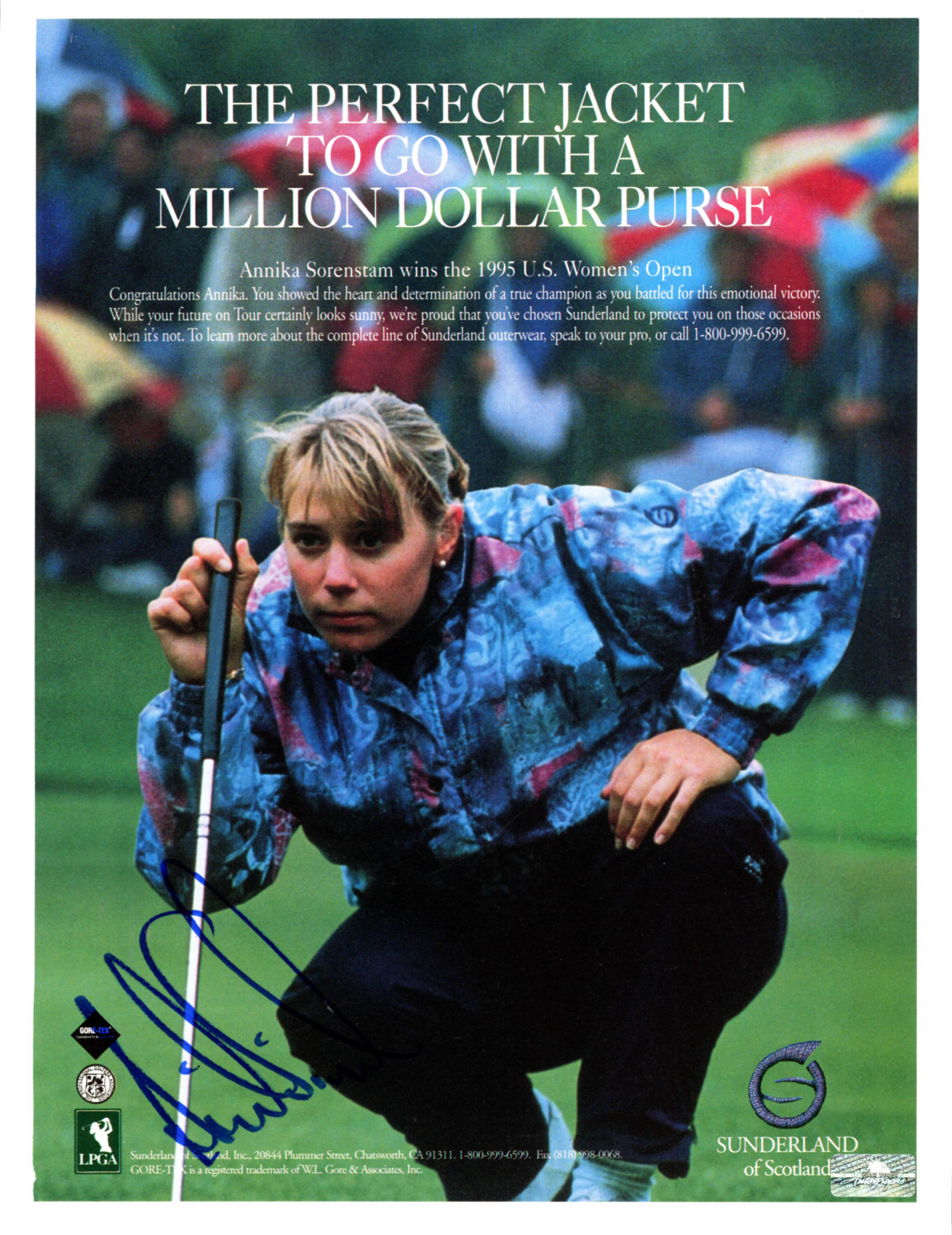 Photo measures 8" x 10" in size and has been hand-signed by Annika Sorenstam.