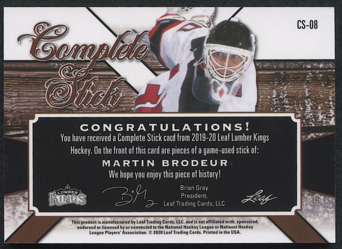 Martin Brodeur 2019-20 Leaf Lumber Kings Hockey Complete Stick Relic #CS-08 - #2/3