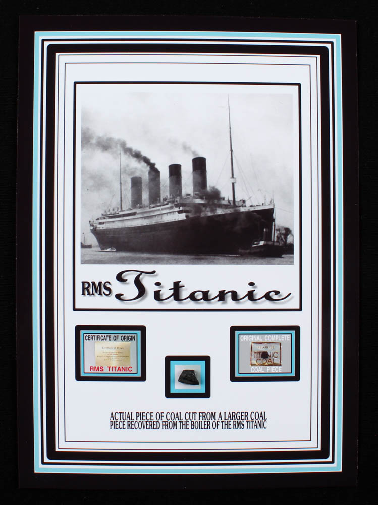 Photo measures approximately 6" x 8" in size and features a piece of coal recovered from the Titanic. Please note, the coal has been glued onto the photo.