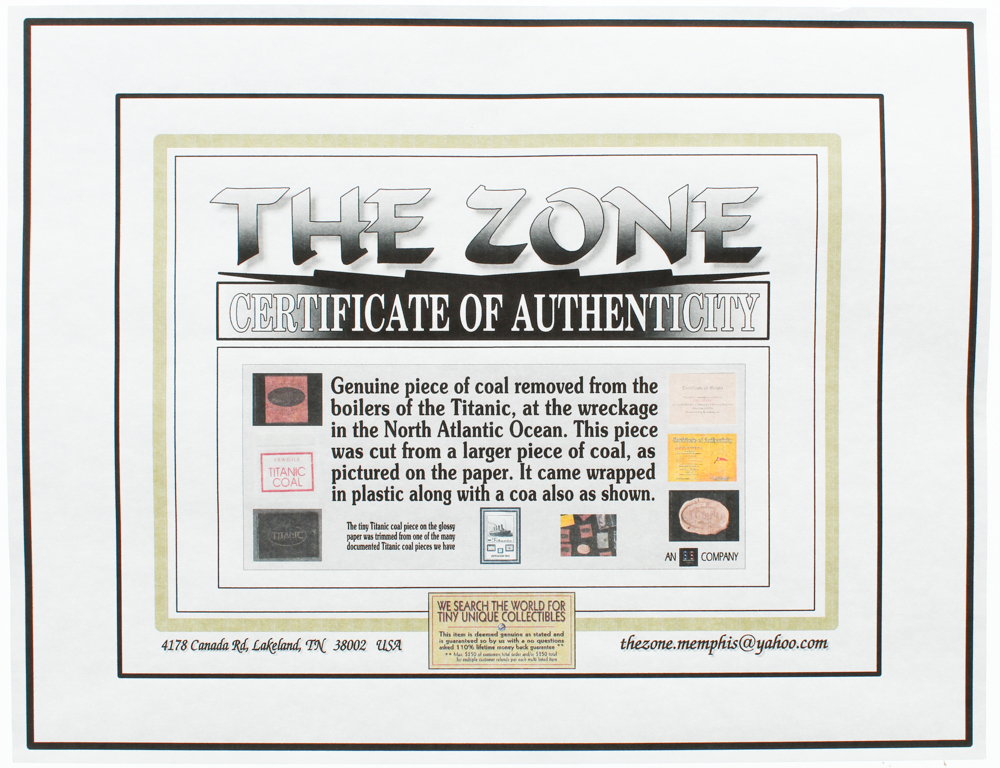 Authentic Coal From Titanic Wreckage on 6x8 Photo (The Zone COA)
