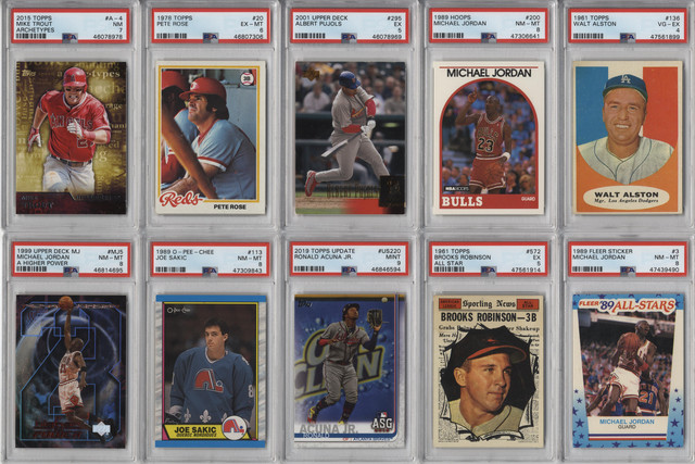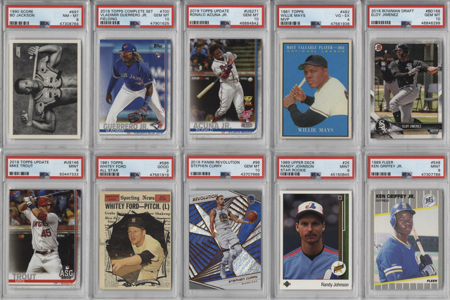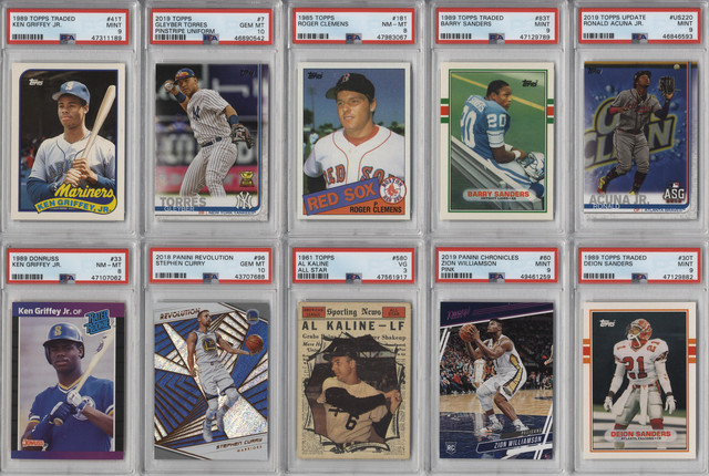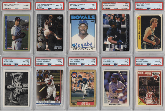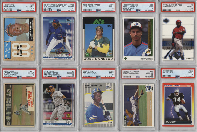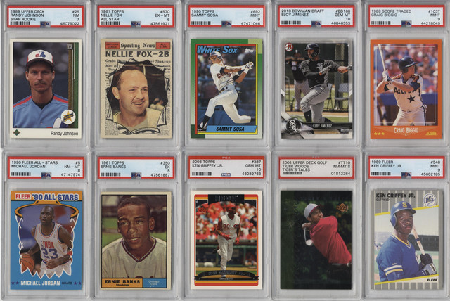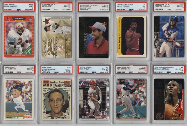 - (100+) CARDS TOTAL FROM COMMON TO HOF CARDS. LOOK FOR RANDOMLY INSERTED INSERT OR PARALLEL CARDS, AUTOGRAPHED CARDS, INDIVIDUAL CARDS, UNOPENED PACKS, UNOPENED RACK PACKS, UNOPENED BOXES OR UNOPENED SETS + GRADED CARDS!!!