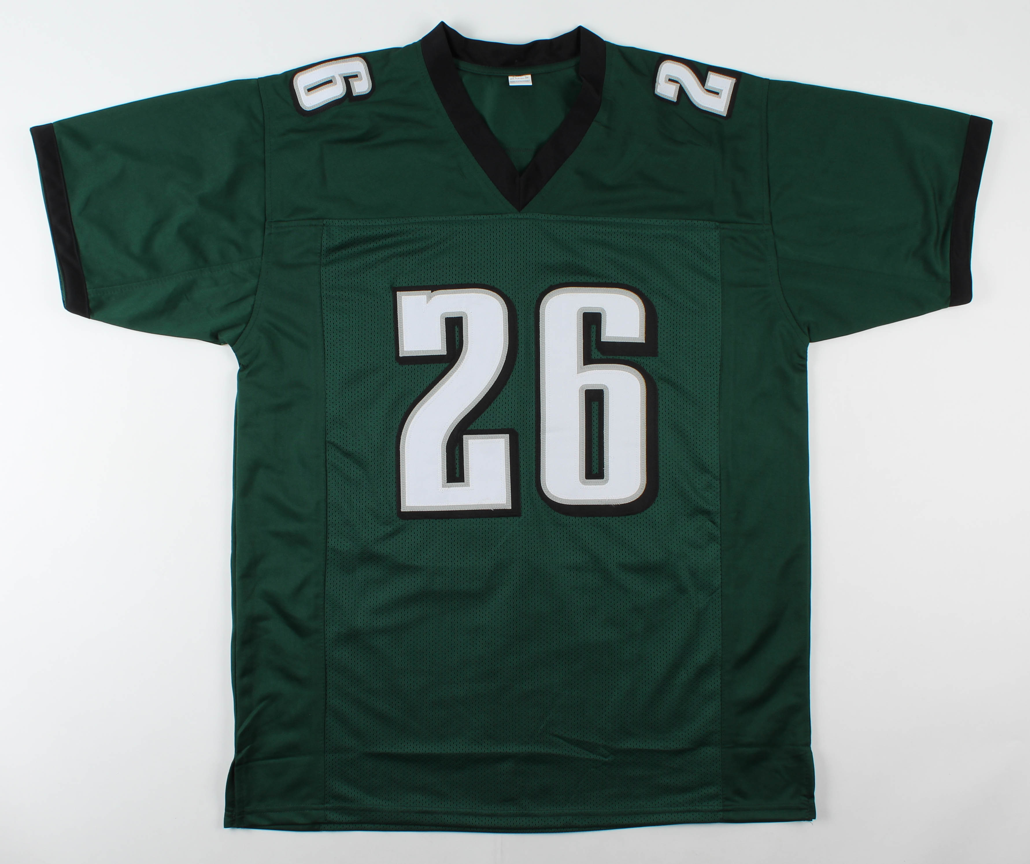 Custom on-field style jersey. Everything printed on, size XL. Hand-signed by Miles Sanders.