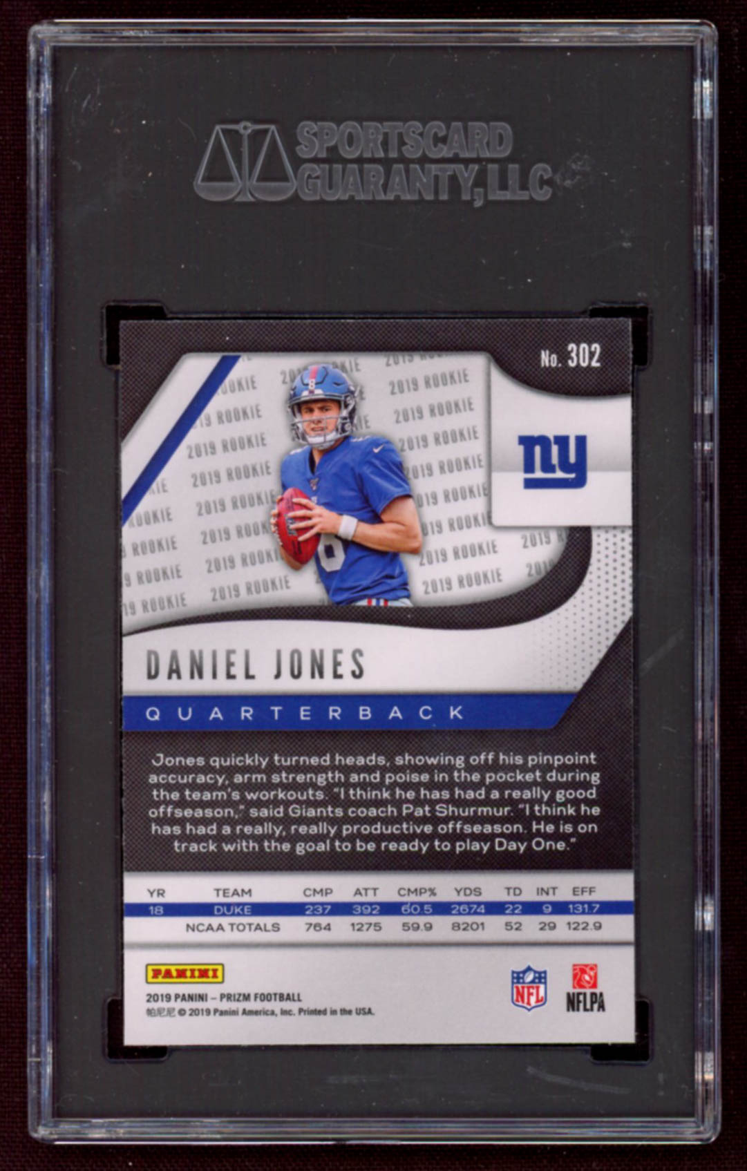 Daniel Jones 2019 Panini Prizm #302 RC (SGC 10)
